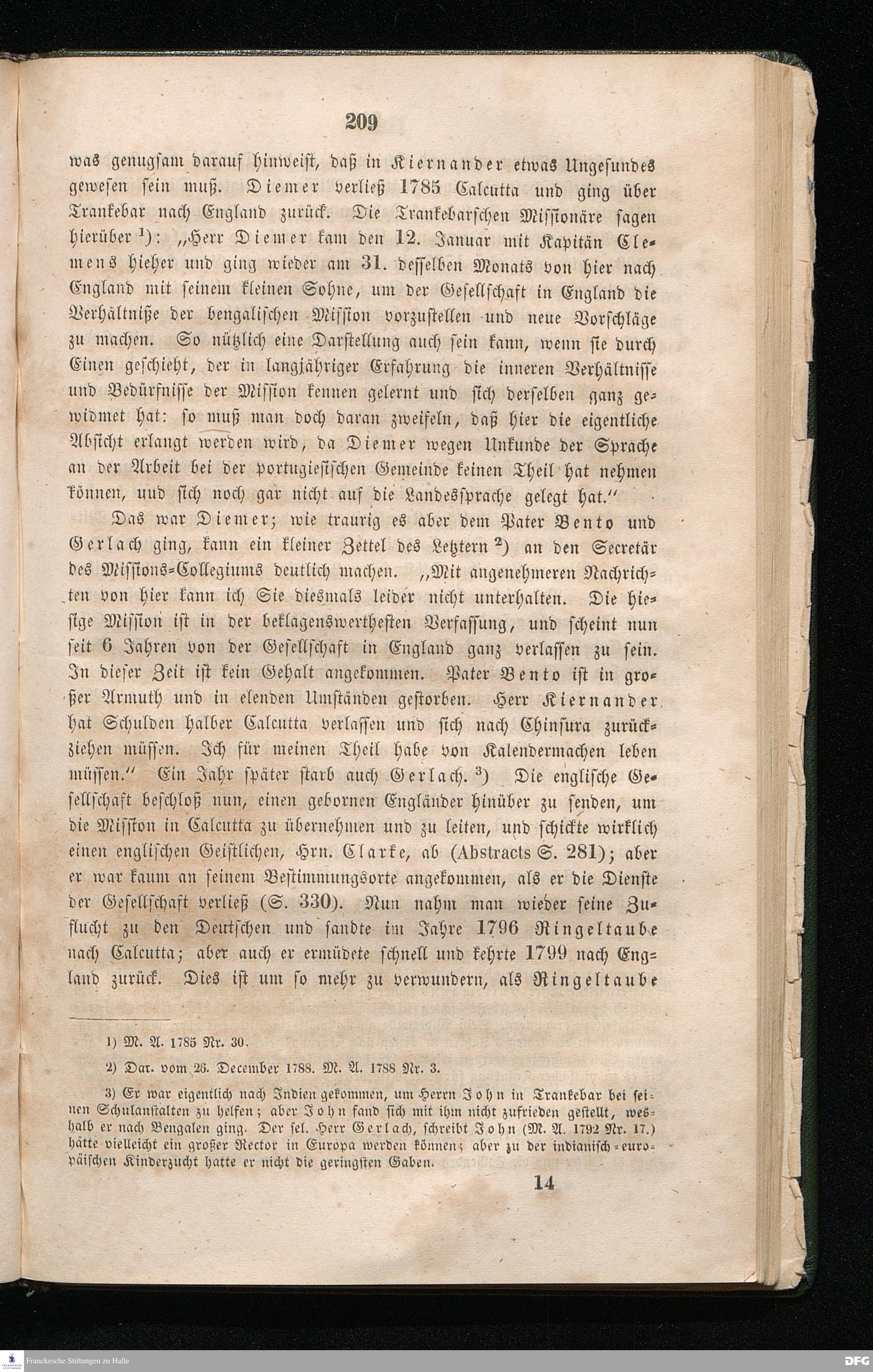 Vierzehntes Kapitel. C. W. Gericke. - Die folgende Geschichte der Mission in Cudelur (Kiernander in Calcutta) und Madras. - Palamcotta.