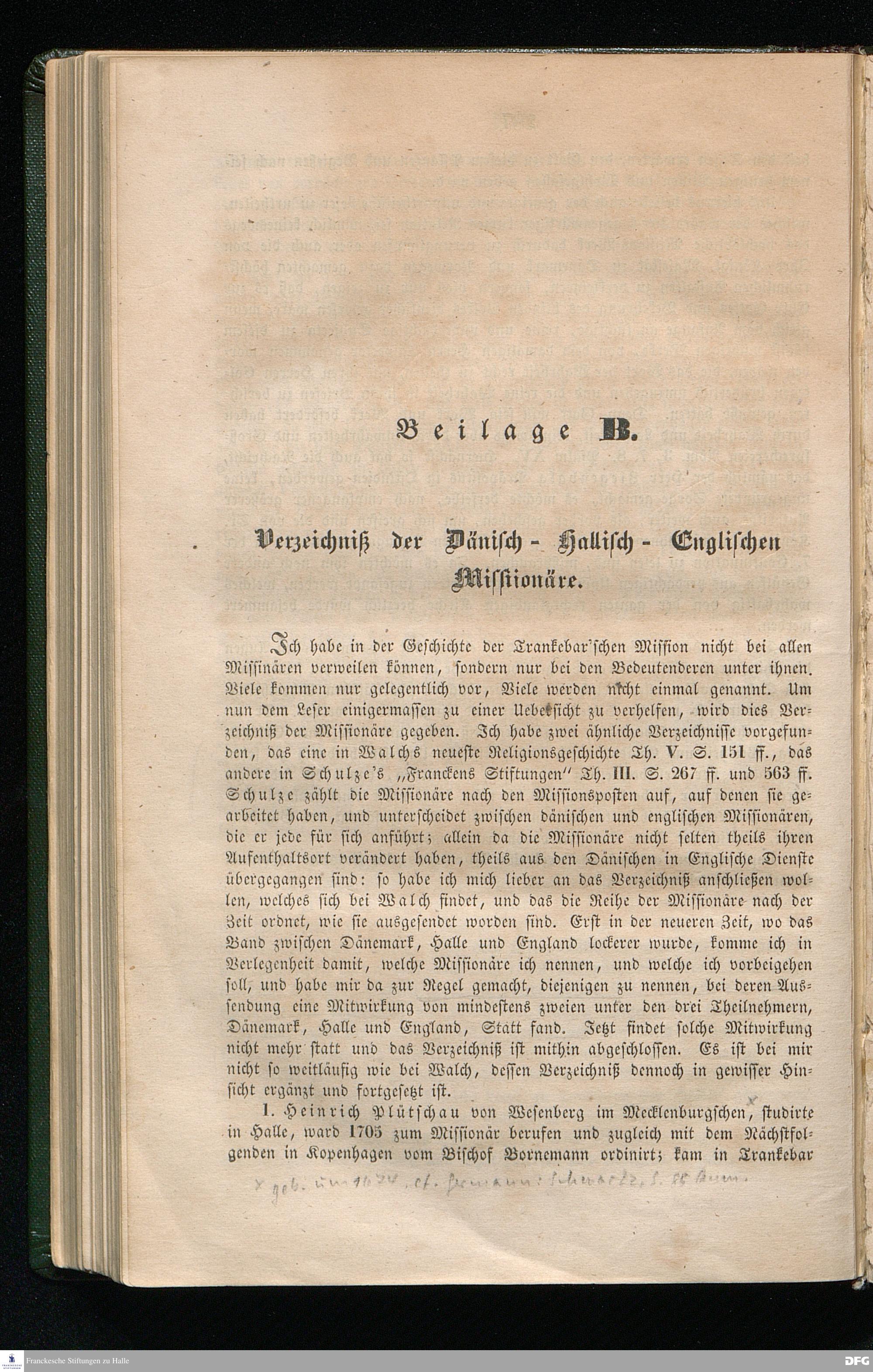 Beilage B. Verzeichniß der Dänisch-Hallisch-Englischen Missionäre.