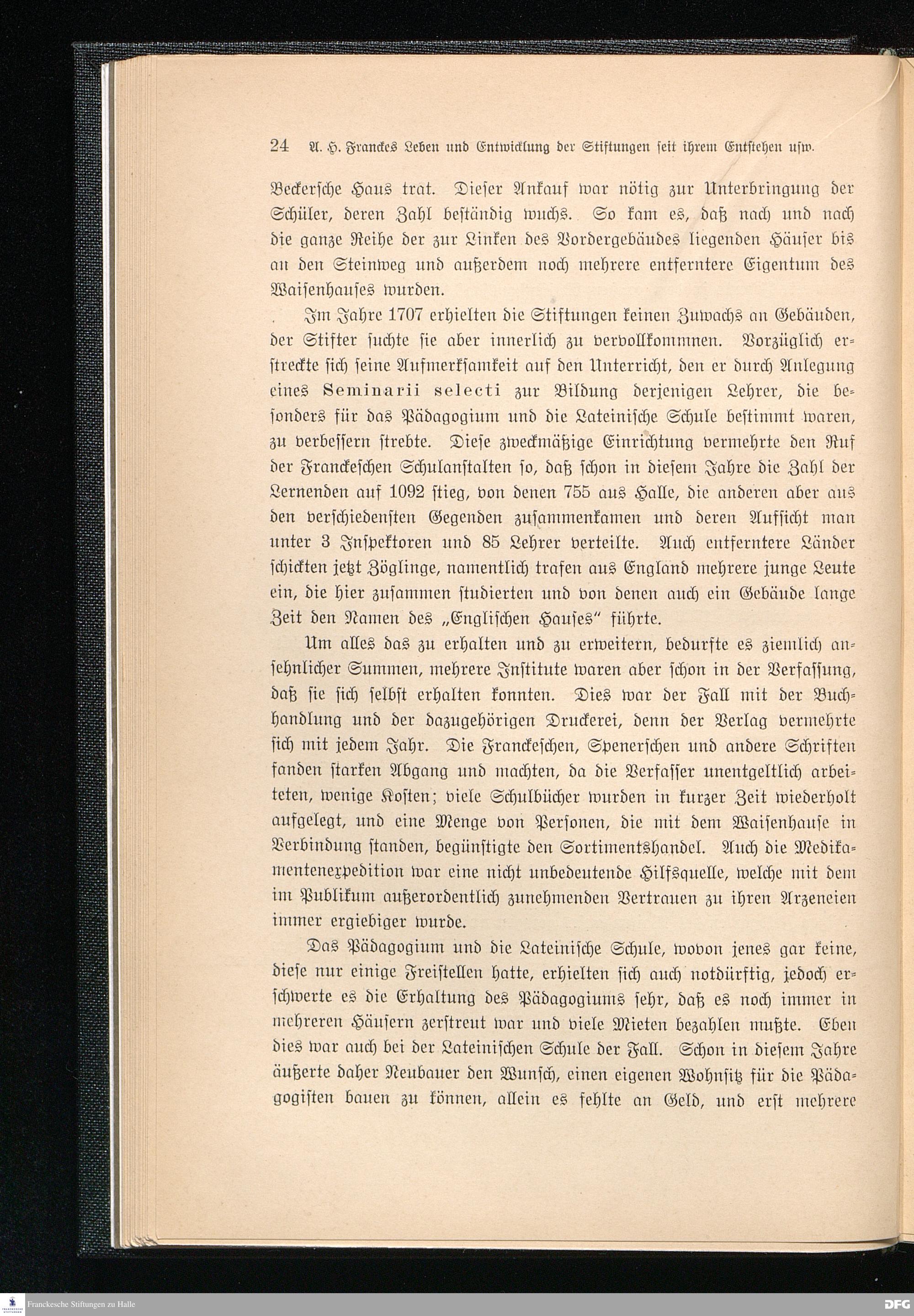 Die Stiftungen August Hermann Franckes. Festschrift zur zweiten Säkularfeier seines Geburtstages. Mit dem Bildnis Franckes, sieben Ansichten und einem Plane des Stiftungsgeländes.