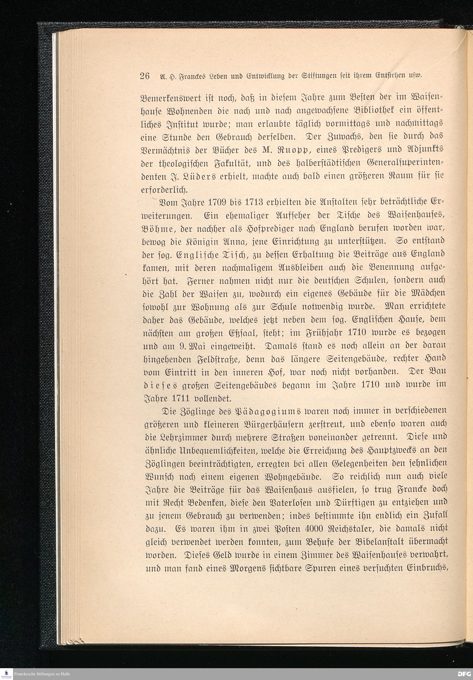 Die Stiftungen August Hermann Franckes. Festschrift zur zweiten Säkularfeier seines Geburtstages. Mit dem Bildnis Franckes, sieben Ansichten und einem Plane des Stiftungsgeländes.