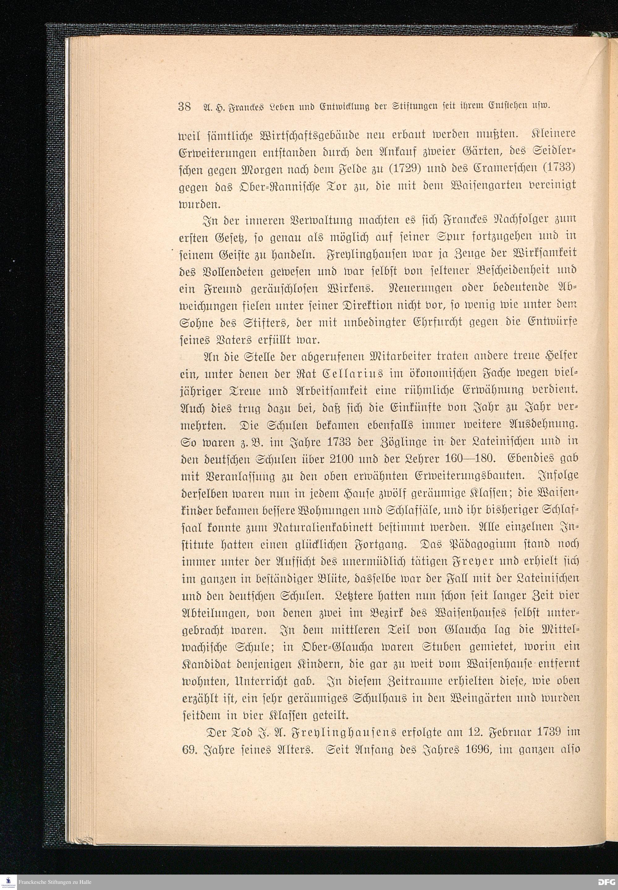 Die Stiftungen August Hermann Franckes. Festschrift zur zweiten Säkularfeier seines Geburtstages. Mit dem Bildnis Franckes, sieben Ansichten und einem Plane des Stiftungsgeländes.