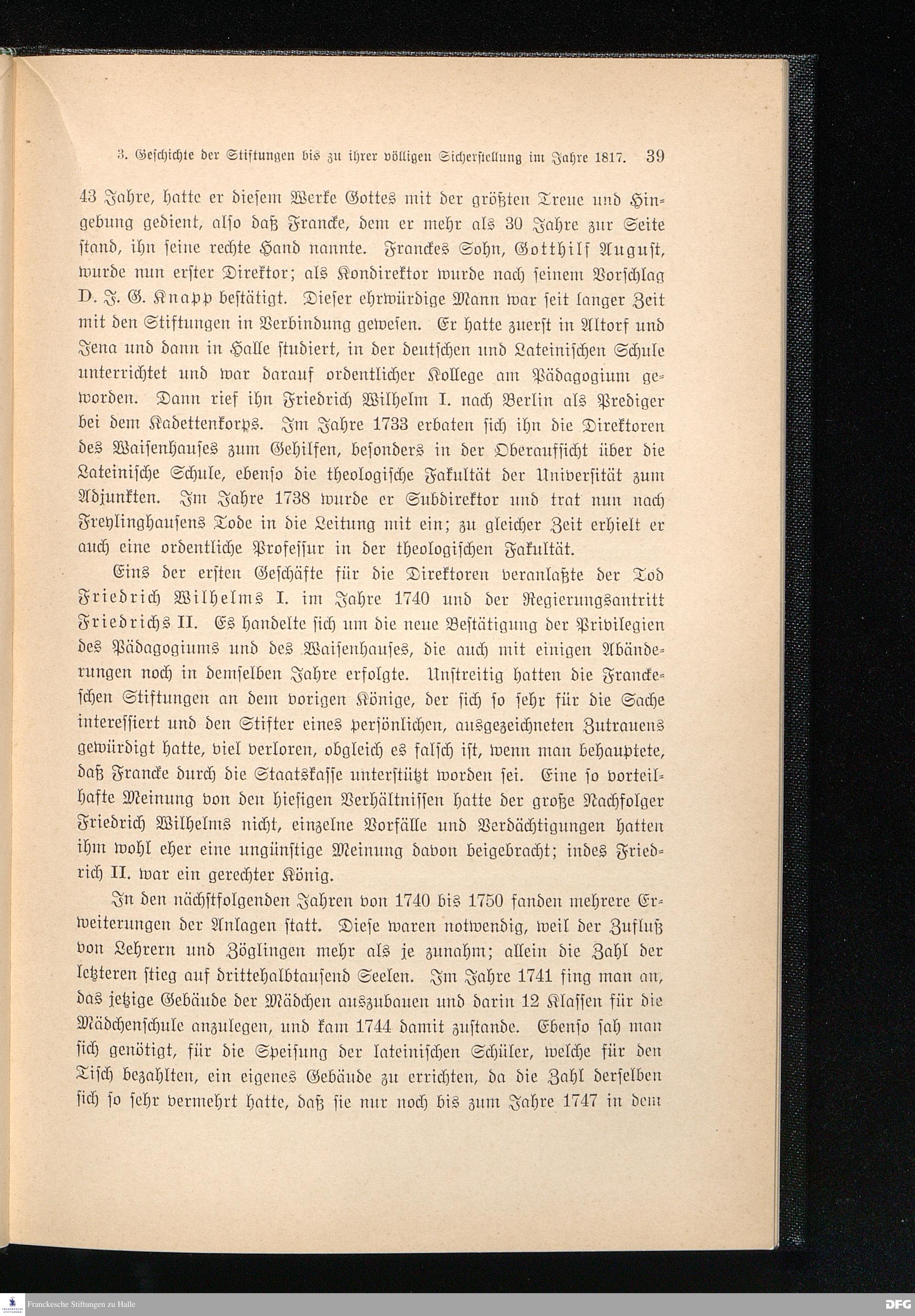 Die Stiftungen August Hermann Franckes. Festschrift zur zweiten Säkularfeier seines Geburtstages. Mit dem Bildnis Franckes, sieben Ansichten und einem Plane des Stiftungsgeländes.