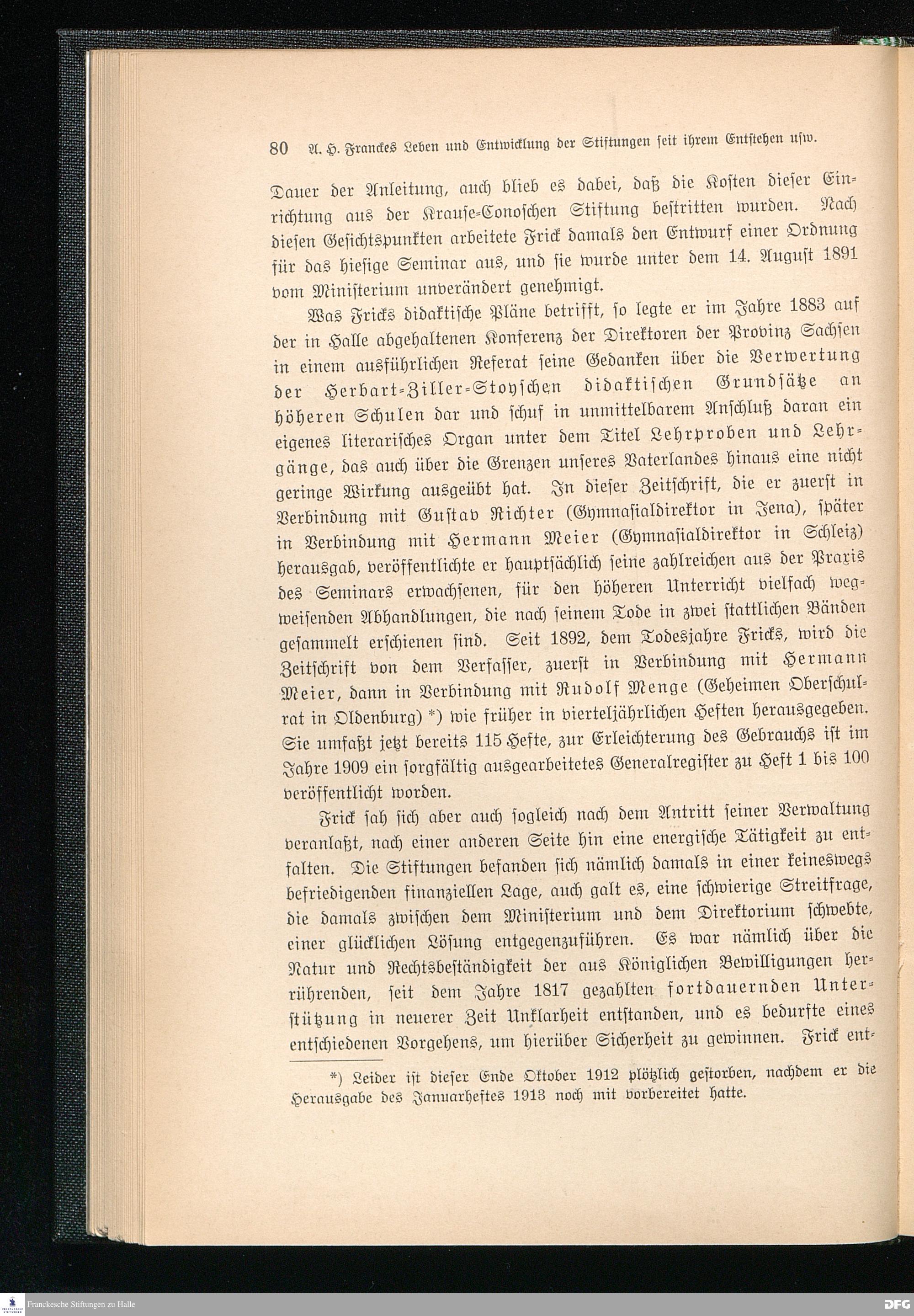 Die Stiftungen August Hermann Franckes. Festschrift zur zweiten Säkularfeier seines Geburtstages. Mit dem Bildnis Franckes, sieben Ansichten und einem Plane des Stiftungsgeländes.