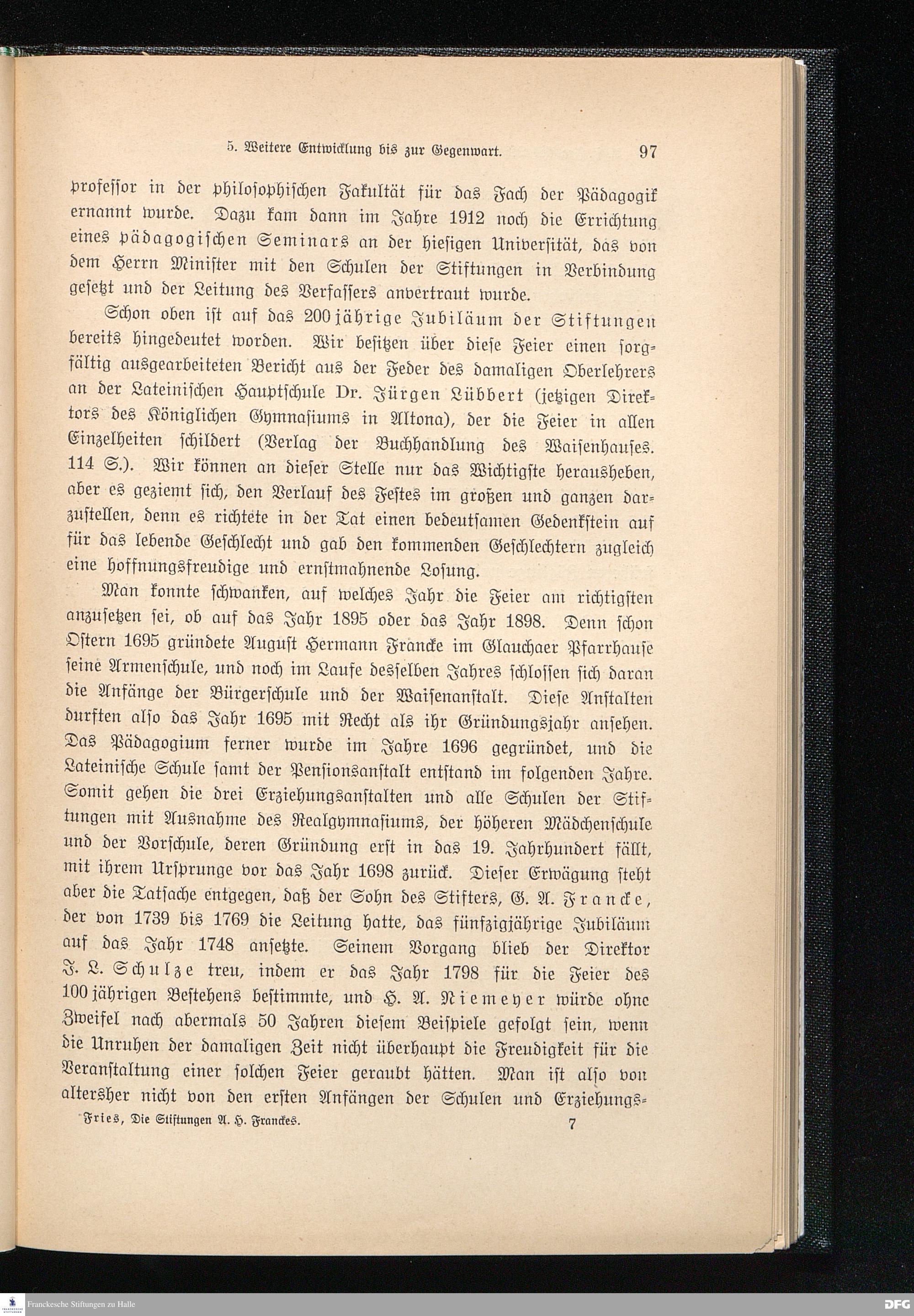 Die Stiftungen August Hermann Franckes. Festschrift zur zweiten Säkularfeier seines Geburtstages. Mit dem Bildnis Franckes, sieben Ansichten und einem Plane des Stiftungsgeländes.