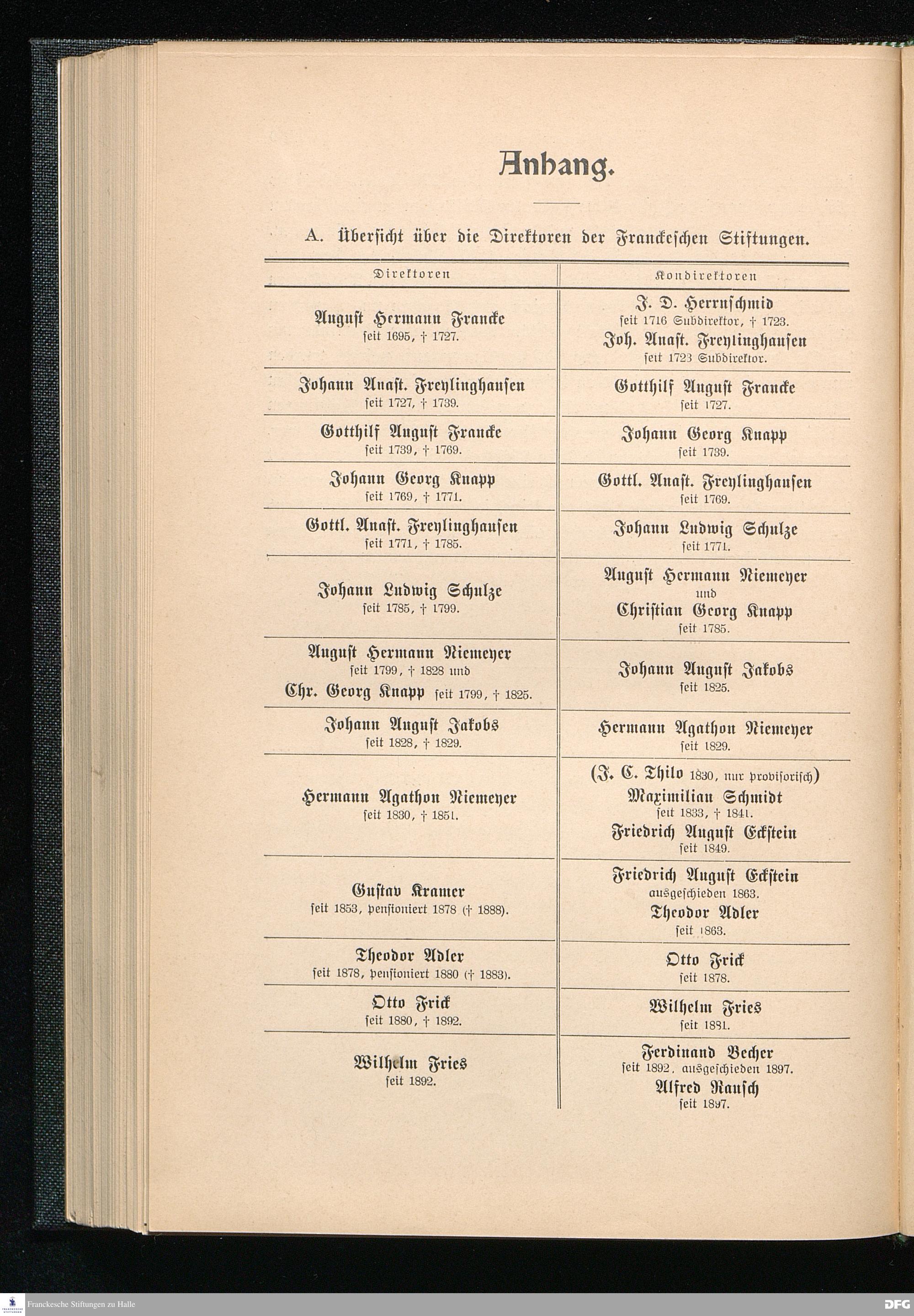 Die Stiftungen August Hermann Franckes. Festschrift zur zweiten Säkularfeier seines Geburtstages. Mit dem Bildnis Franckes, sieben Ansichten und einem Plane des Stiftungsgeländes.
