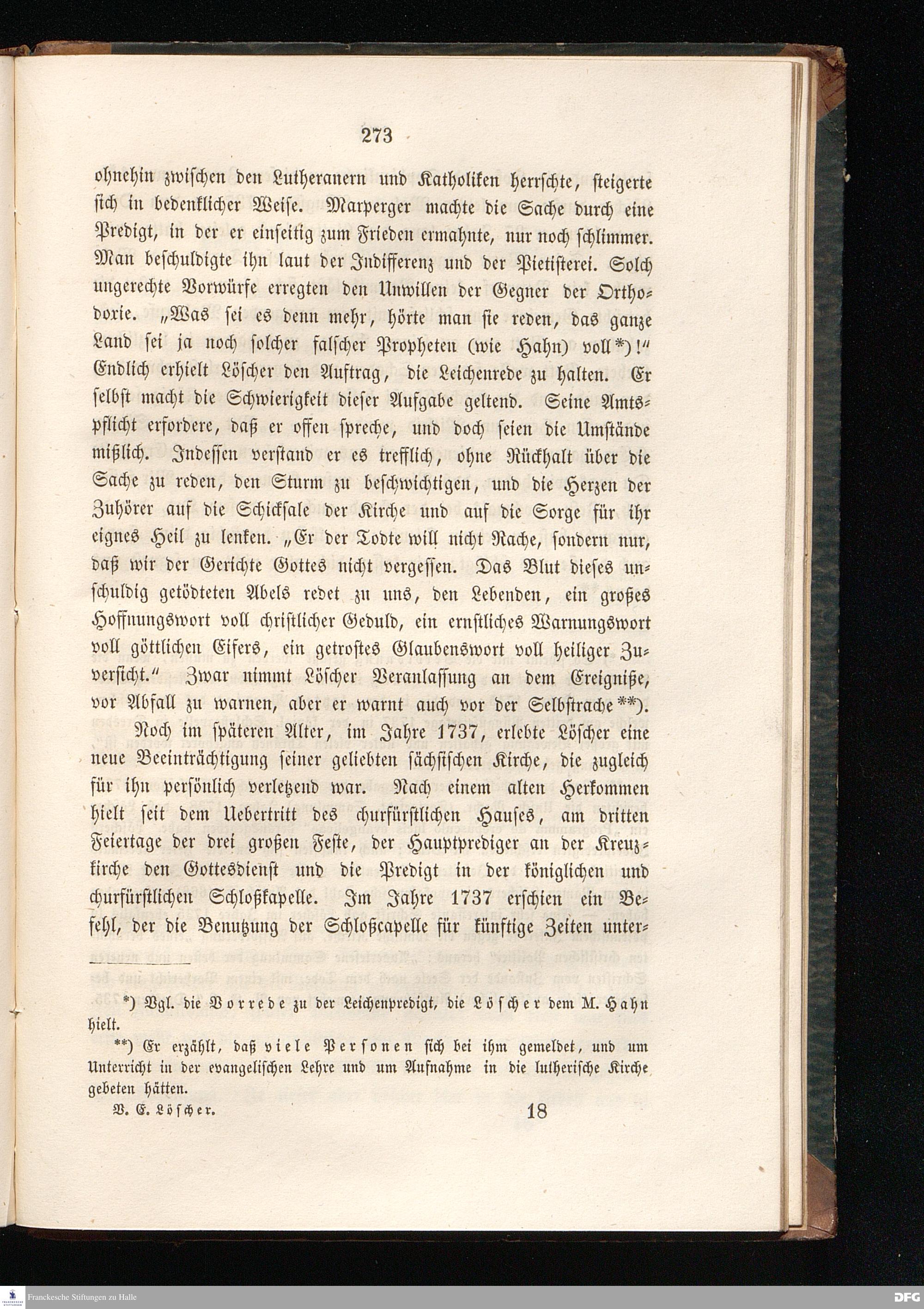 Valentin Ernst Löscher nach seinem Leben und Wirken. Ein geschichtlicher Beitrag zu den Streitfragen über Orthodoxie, Pietismus und Union.