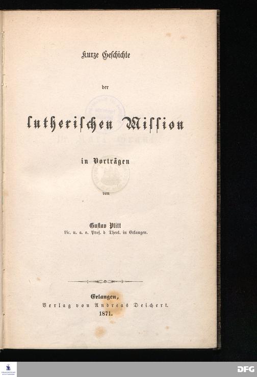 Kurze Geschichte der lutherischen Mission in Vorträgen.
