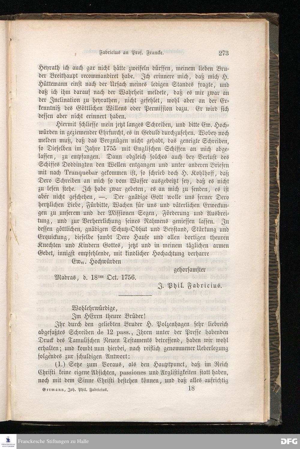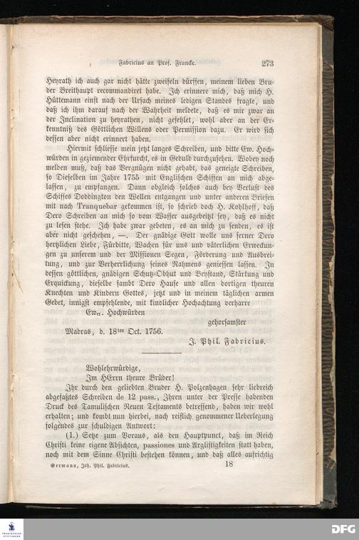 Johann Philipp Fabricius. Seine fünfzigjährige Wirksamkeit im Tamulenlande und das Missionsleben des 18. Jahrhunderts daheim und draussen. Nach handschriftlichen Quellen geschildert.