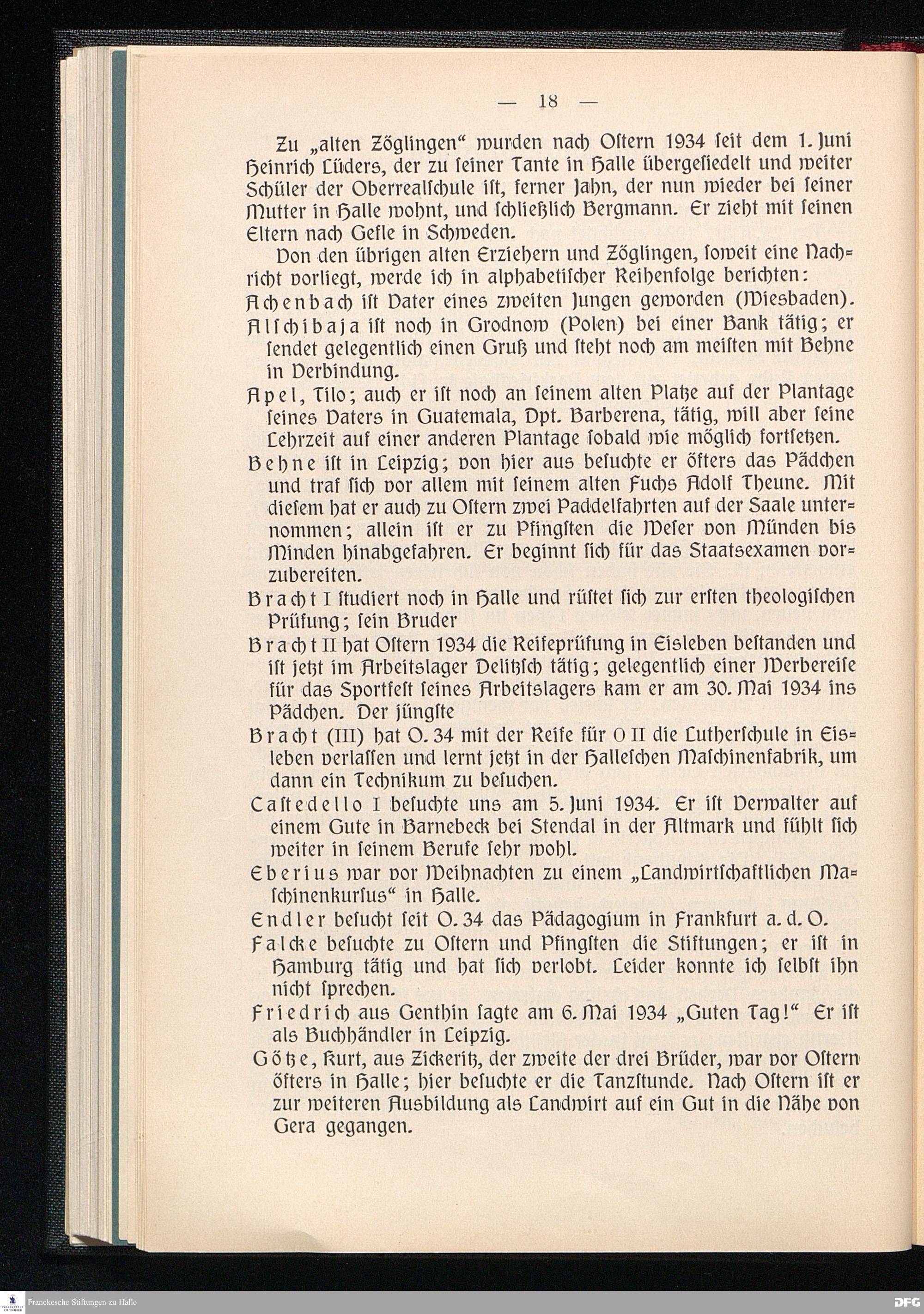 Blätter der Franckeschen Stiftungen Halle (Saale) 1934