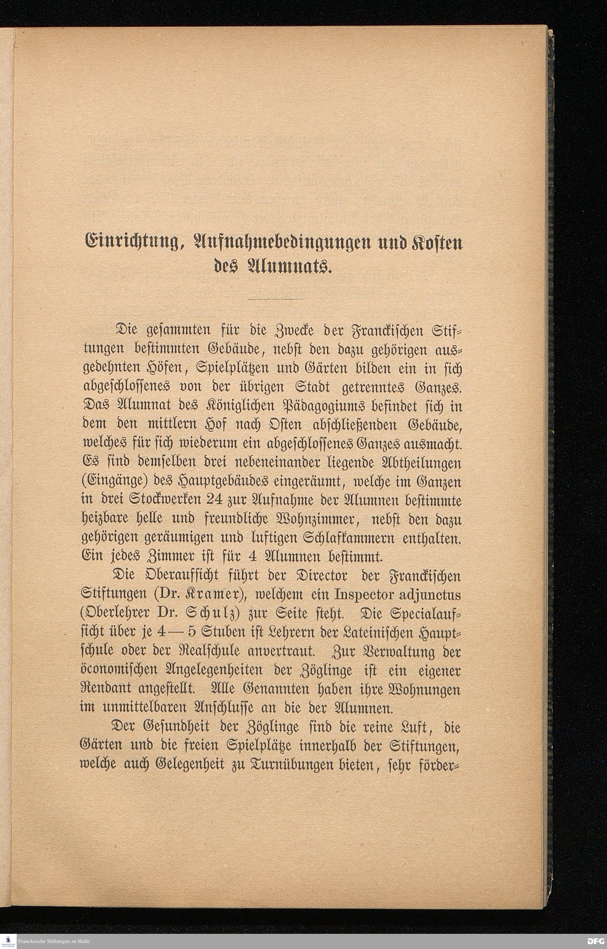 Kurzer Bericht über das Alumnat des Königl. Pädagogiums in den Franckischen Stiftungen zu Halle.