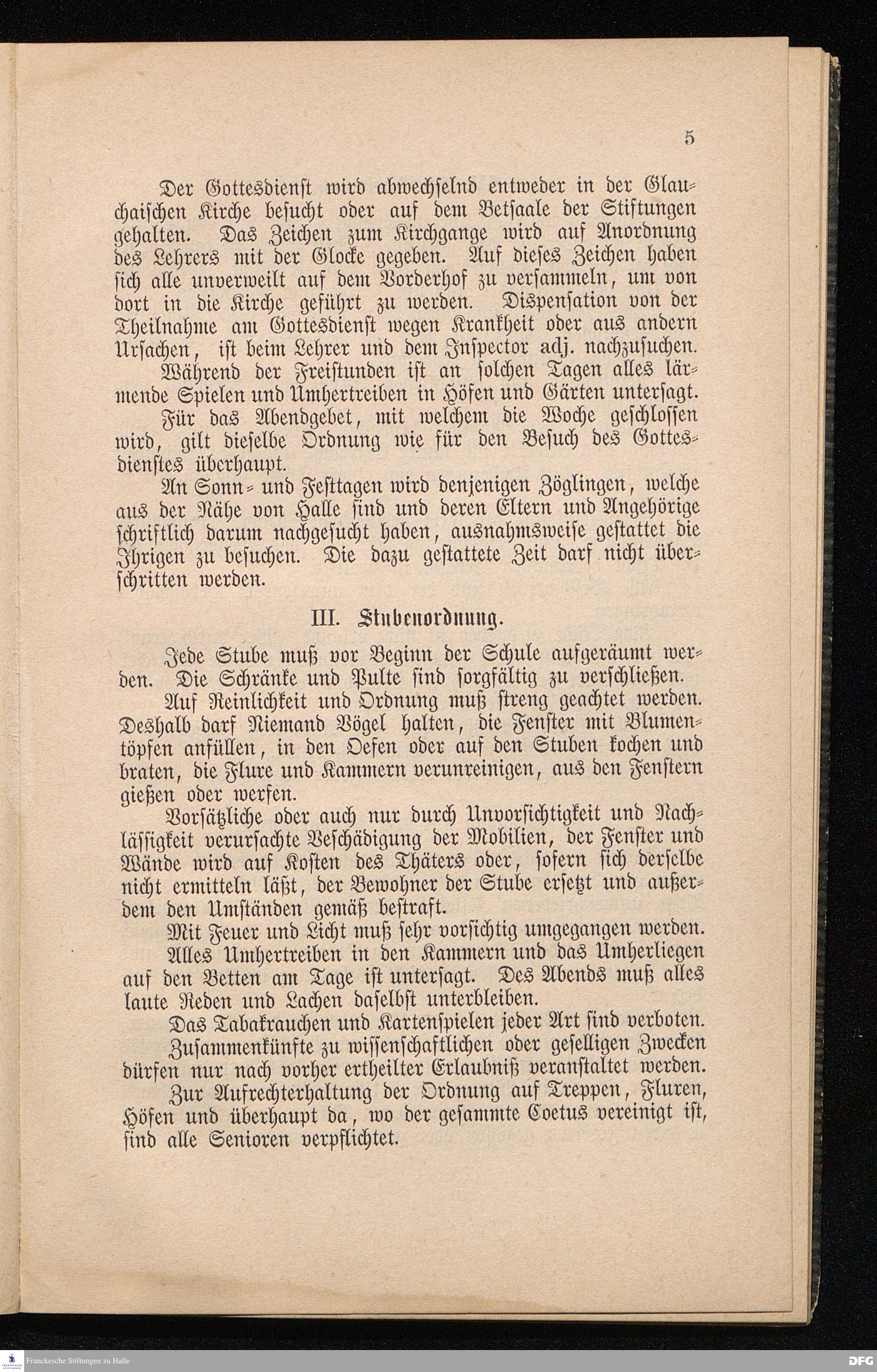Ordnungen und Gesetze für die Zöglinge des Alumnats des königl. Pädagogiums in den Franckischen Stiftungen.