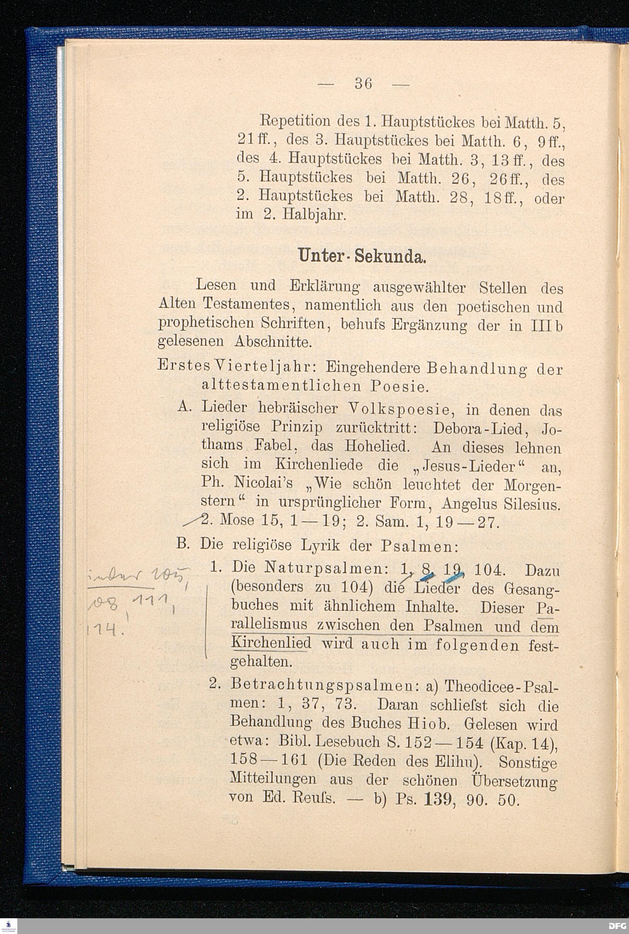 Ordnung und Lehrart der Lateinischen Hauptschule in den Franckeschen Stiftungen zu Halle a. S. Auf Grund der Lehrpläne und Lehraufgaben für die höheren Schulen Preußens vom Jahre 1901. T. 2. Der Religionsunterricht.