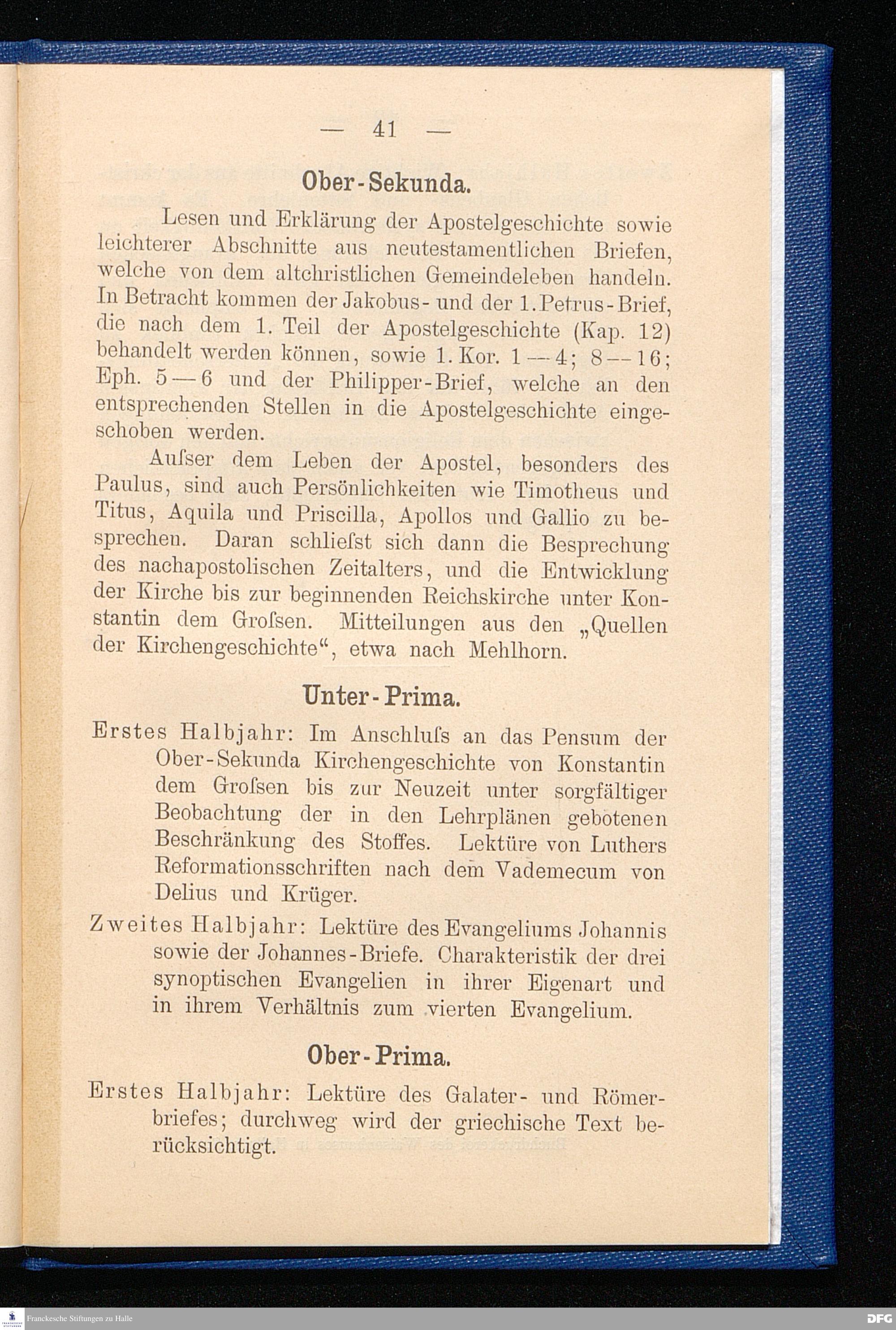 Ordnung und Lehrart der Lateinischen Hauptschule in den Franckeschen Stiftungen zu Halle a. S. Auf Grund der Lehrpläne und Lehraufgaben für die höheren Schulen Preußens vom Jahre 1901. T. 2. Der Religionsunterricht.