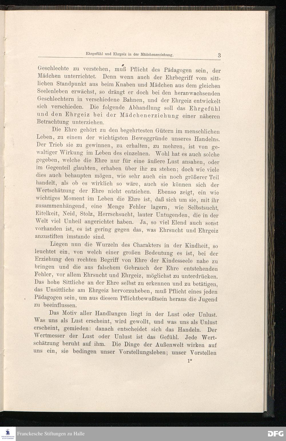 Ehrgefühl und Ehrgeiz in der Mädchenerziehung.