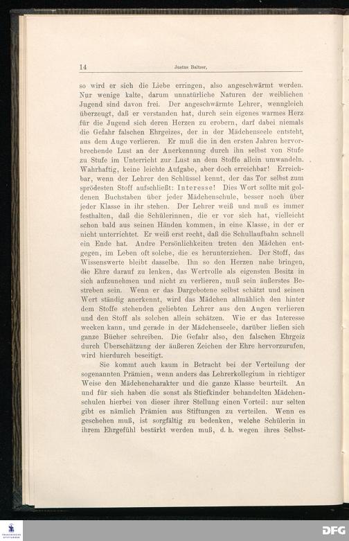 Ehrgefühl und Ehrgeiz in der Mädchenerziehung.