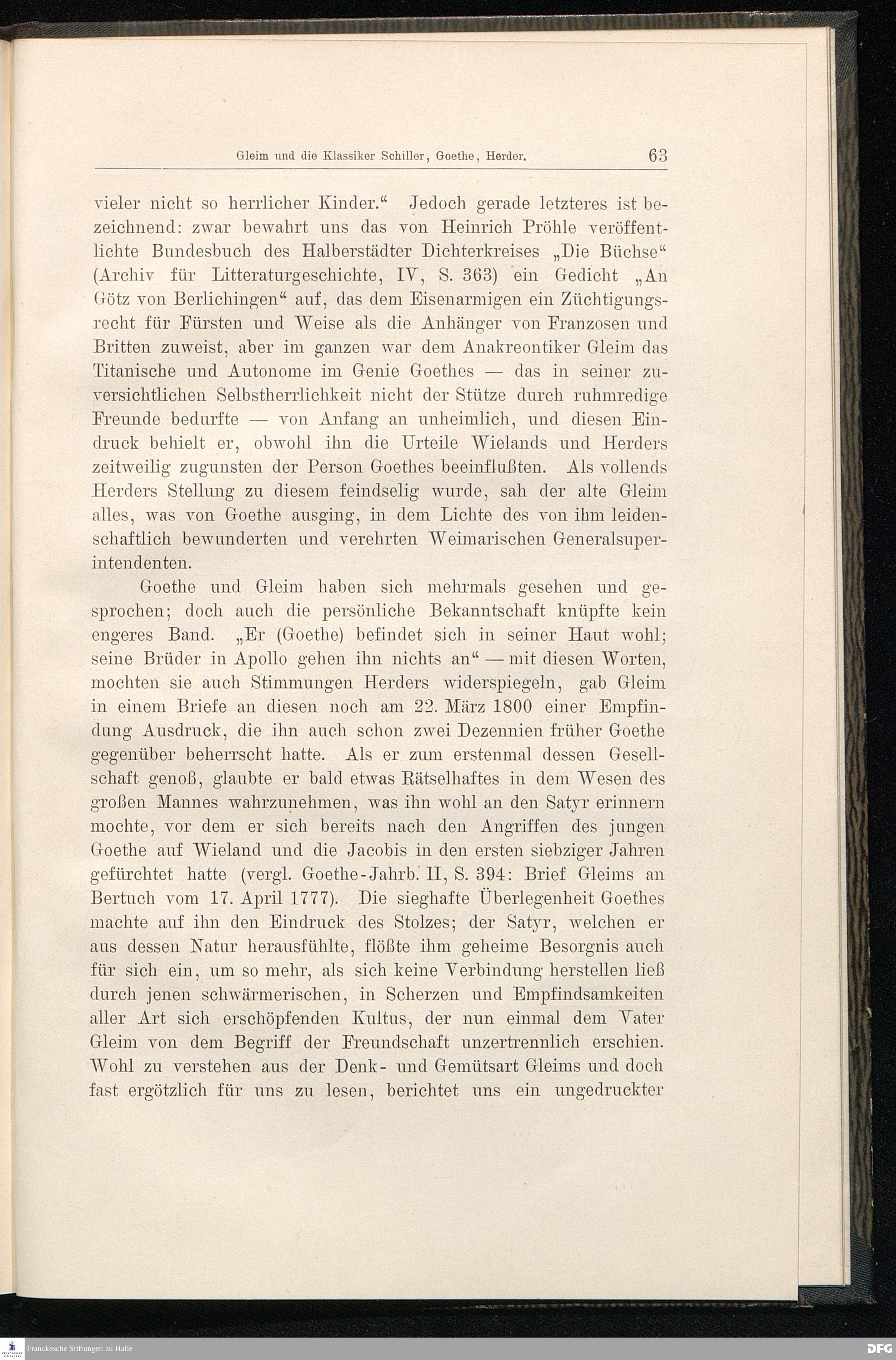 Gleim und die Klassiker Goethe, Schiller, Herder. Ein Beitrag zur Literaturgeschichte...