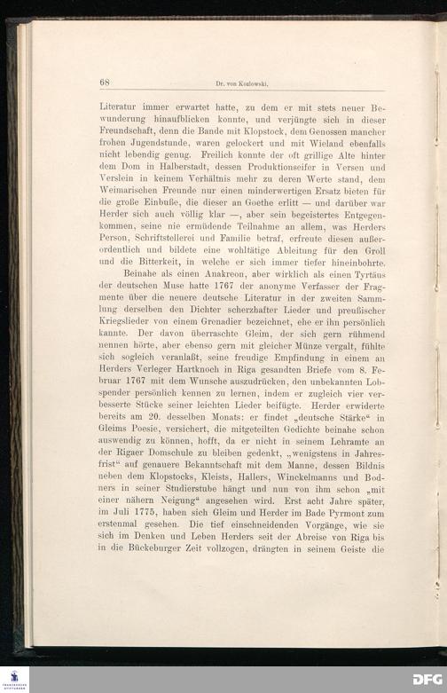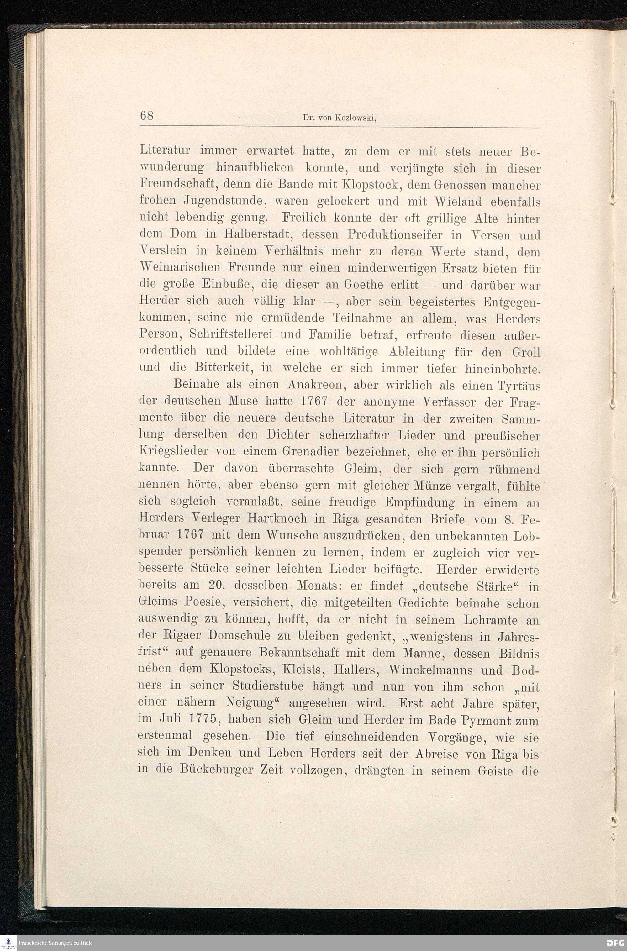 Gleim und die Klassiker Goethe, Schiller, Herder. Ein Beitrag zur Literaturgeschichte...
