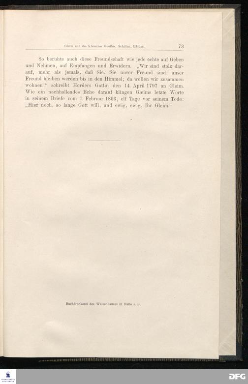 Gleim und die Klassiker Goethe, Schiller, Herder. Ein Beitrag zur Literaturgeschichte...