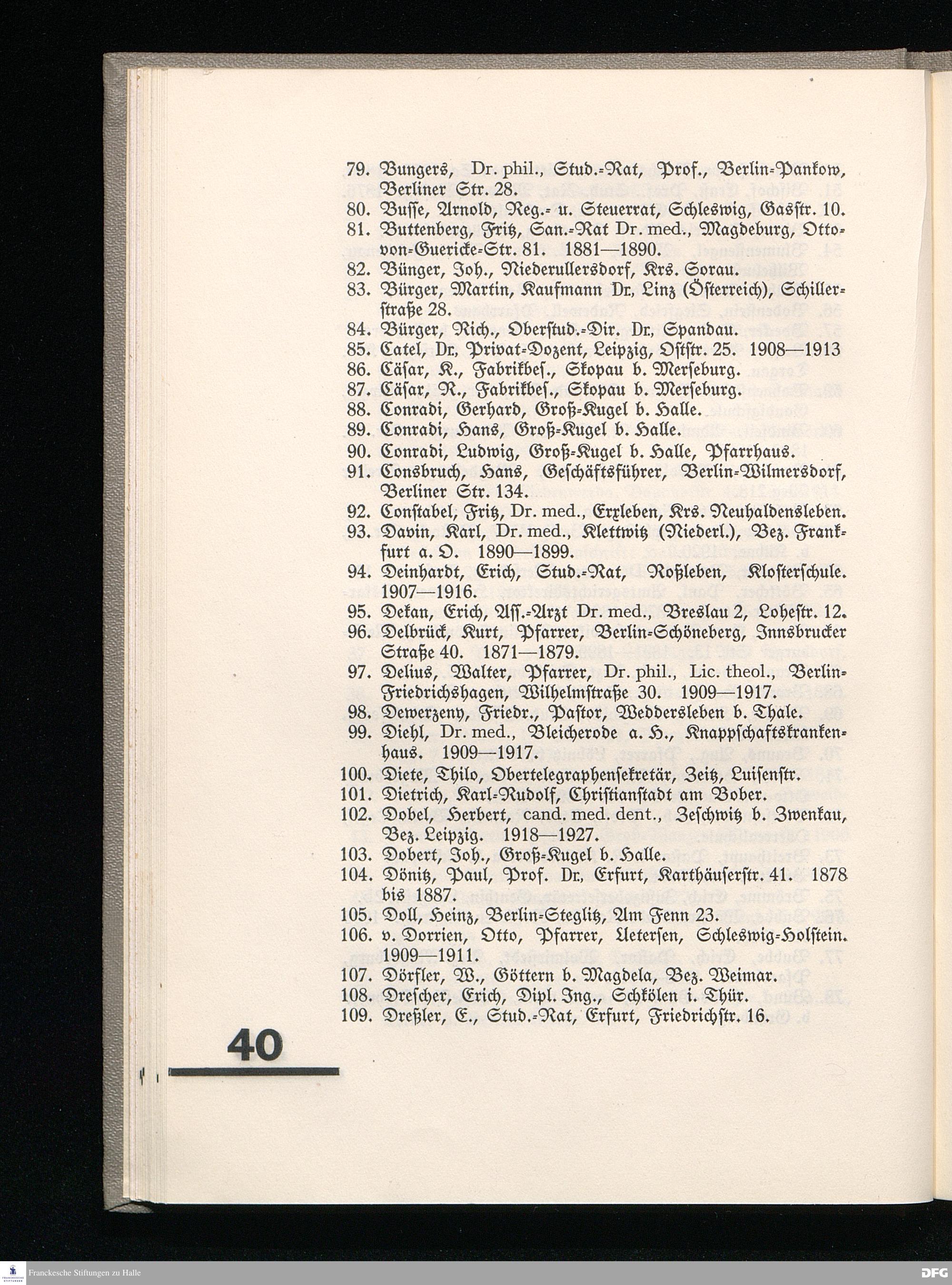 Anschriften-Verzeichnis der alten Lateiner mit Ausnahme von Halle und näherer Um...
