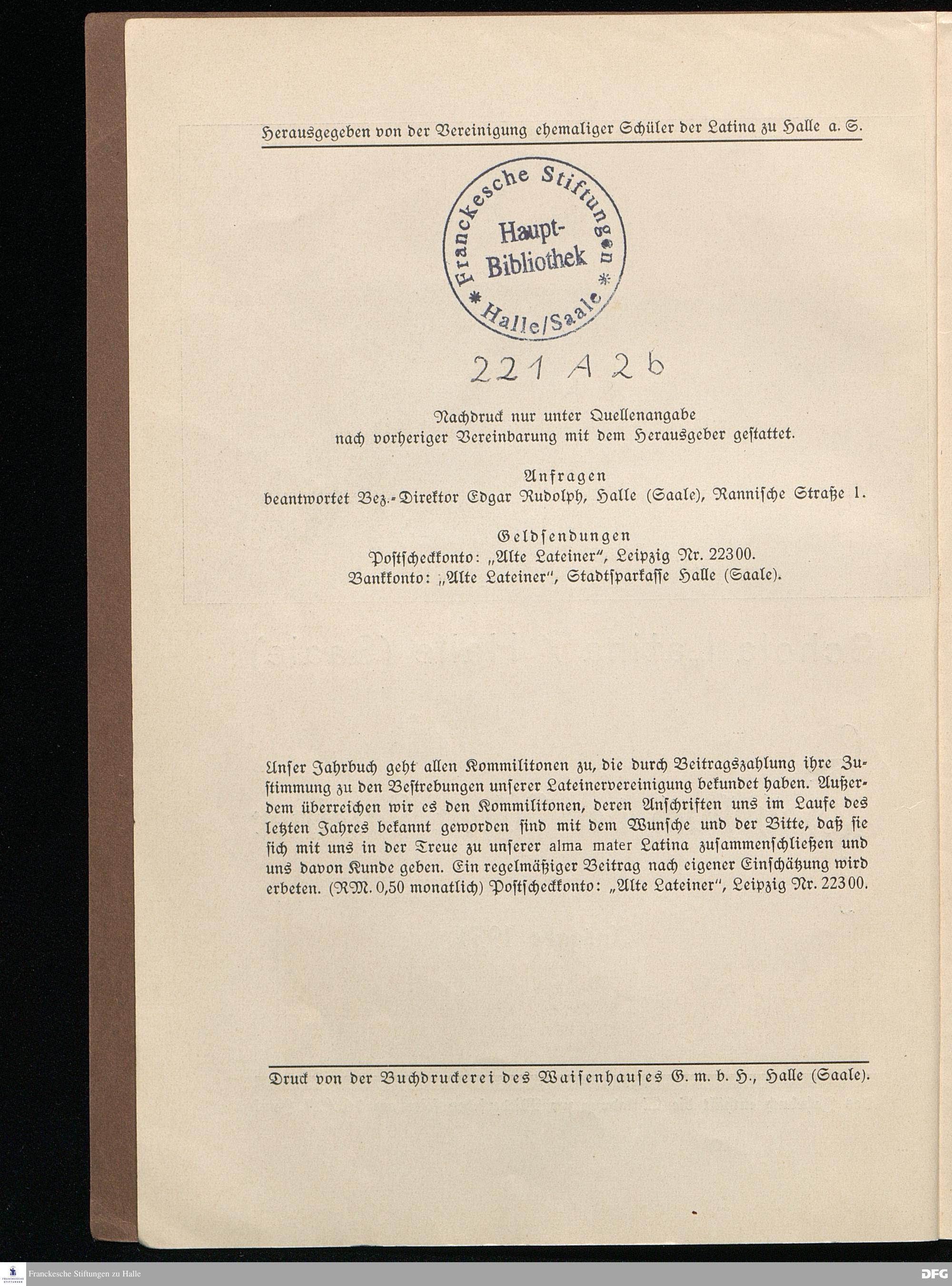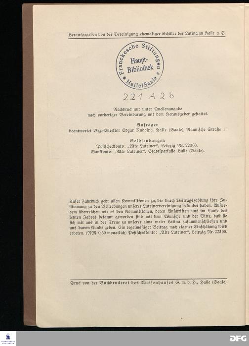 SCHOLA LATINA HALLE/S. 1931