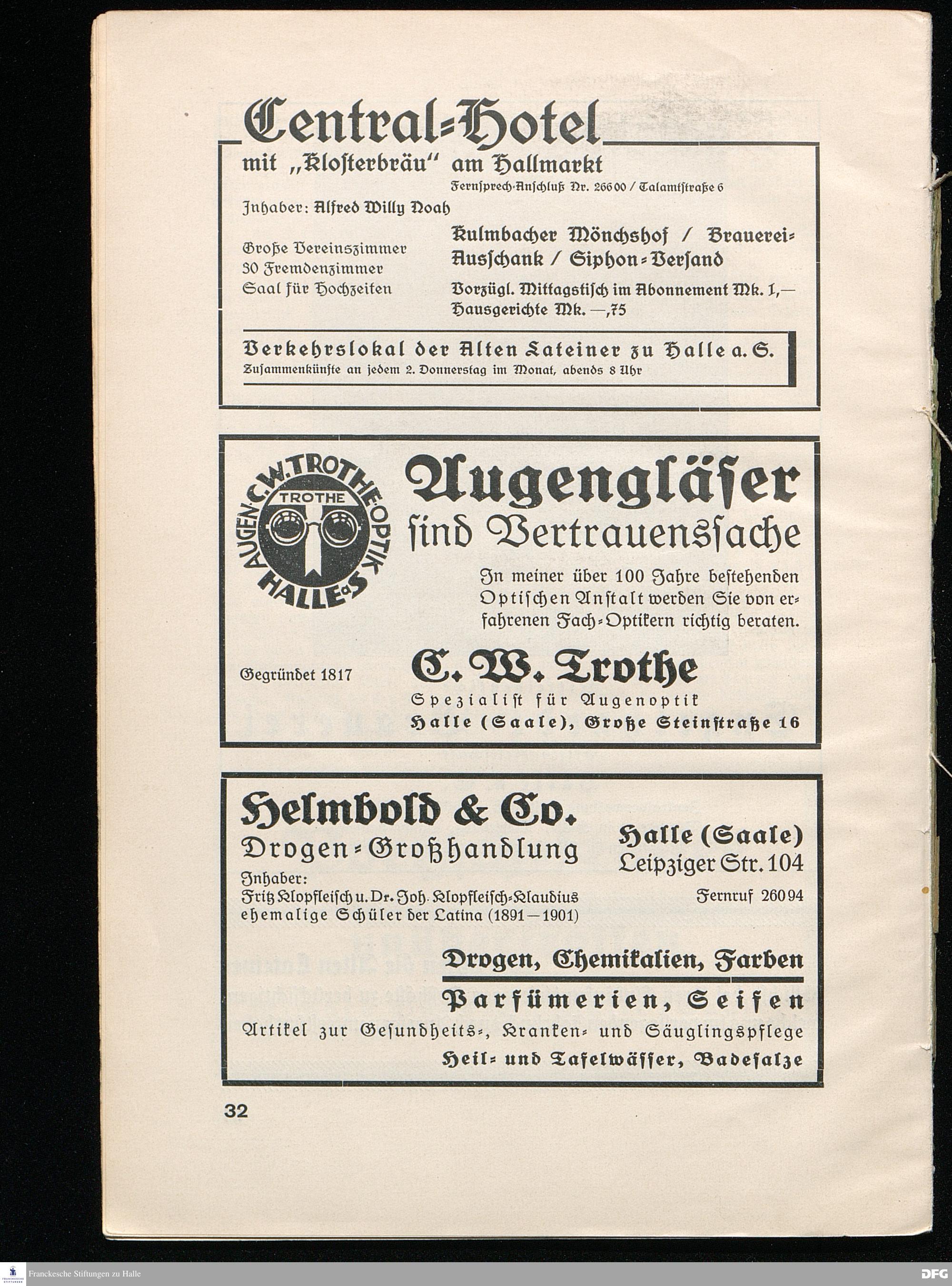 SCHOLA LATINA/ HALLE (SAALE) Jahrbuch der Alten Lateiner Ausgabe 1932