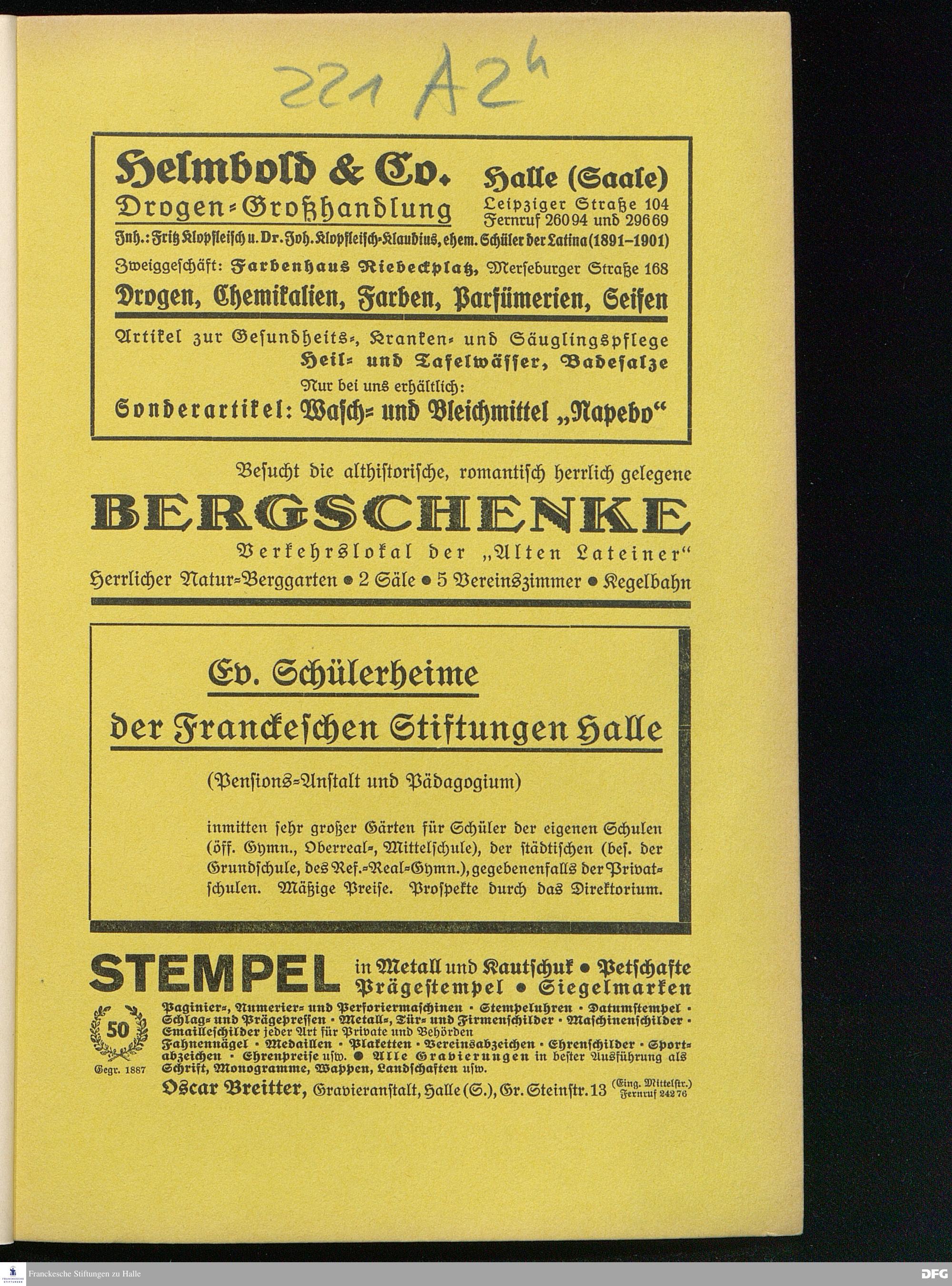 SCHOLA LATINA HALLE-SAALE 1937