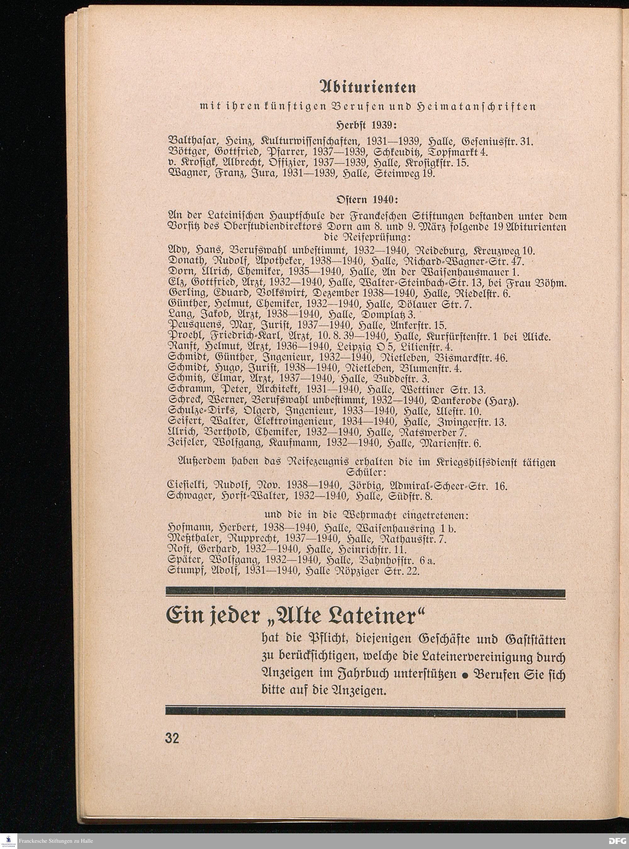 SCHOLA LATINA Halle-Saale 1940