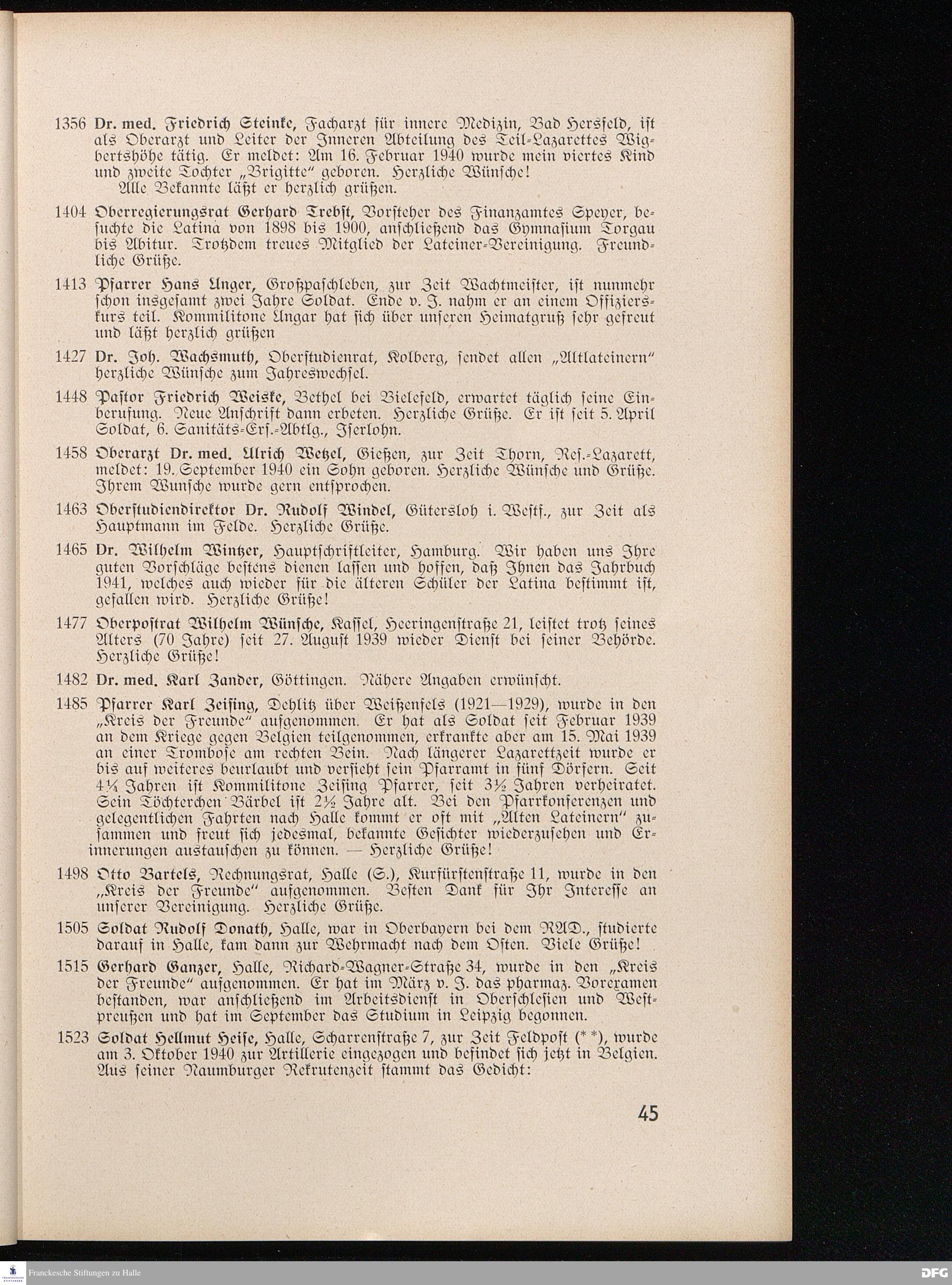 SCHOLA LATINA HALLE/SAALE 1941