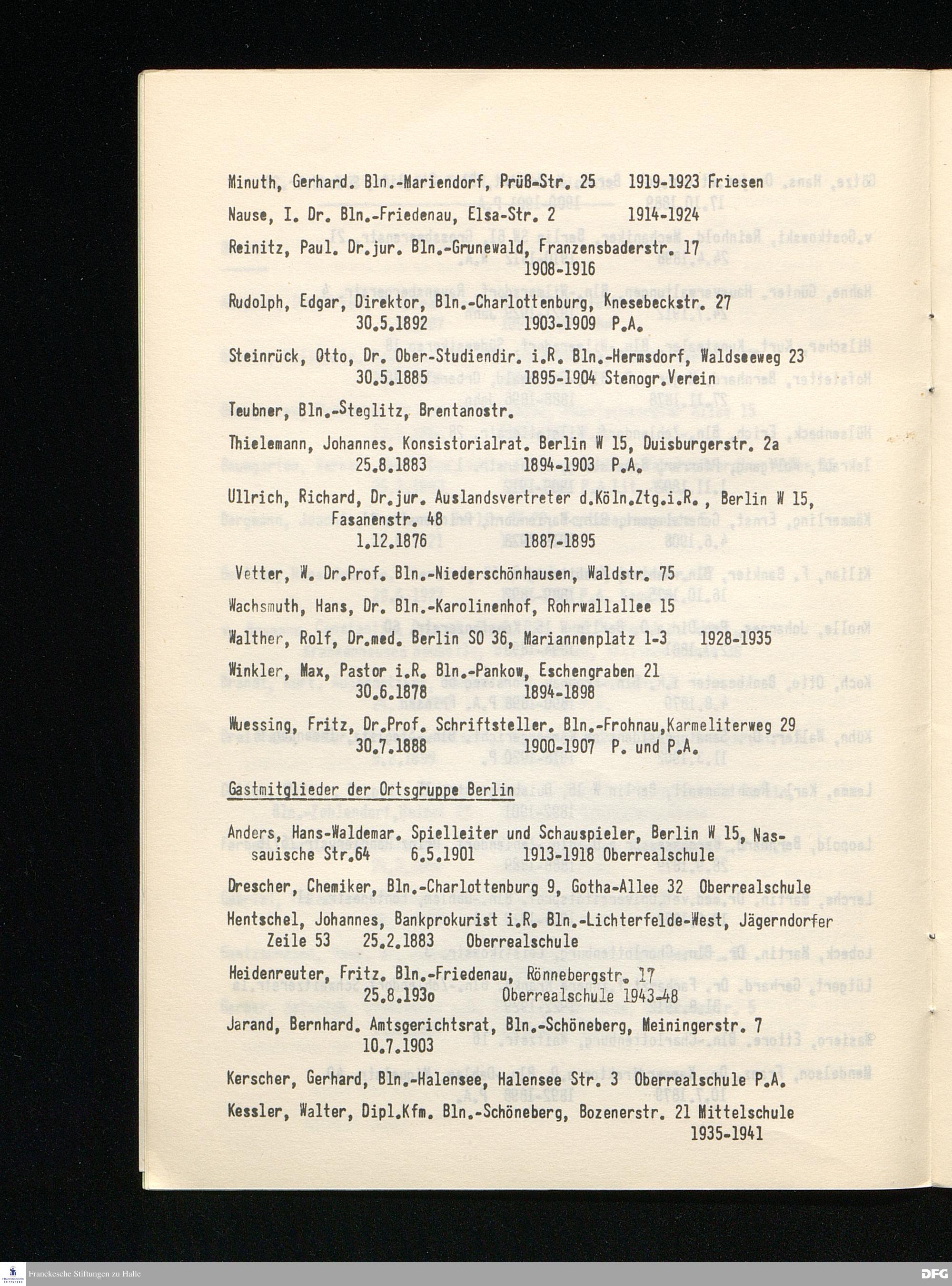 ANSCHRIFTEN - Verzeichnis