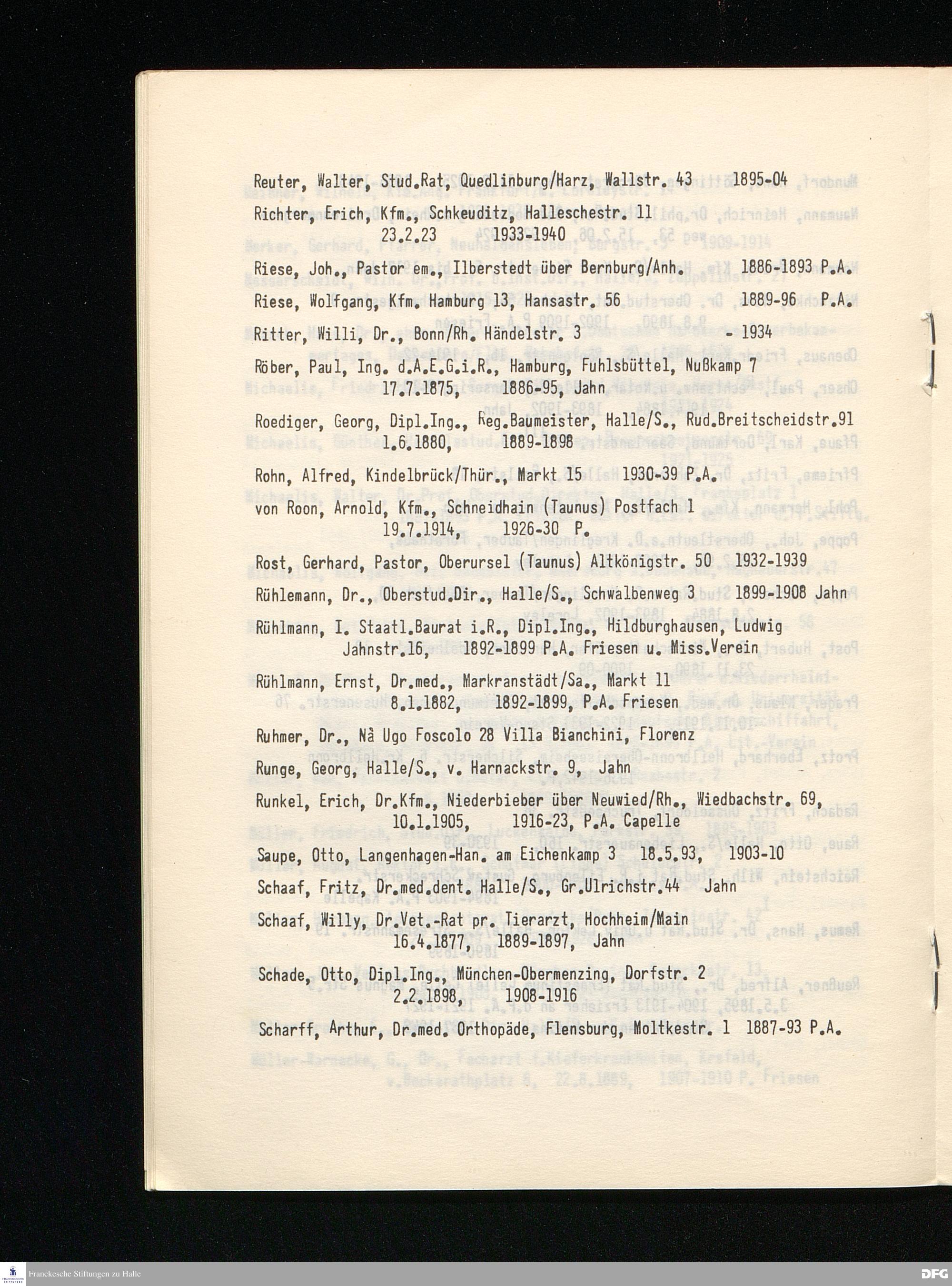ANSCHRIFTEN - Verzeichnis