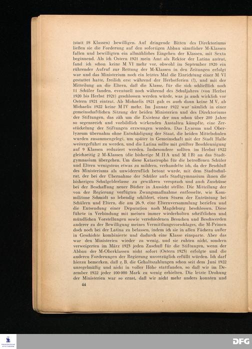 Der Abbau der Michaelisklassen der Latina 1922