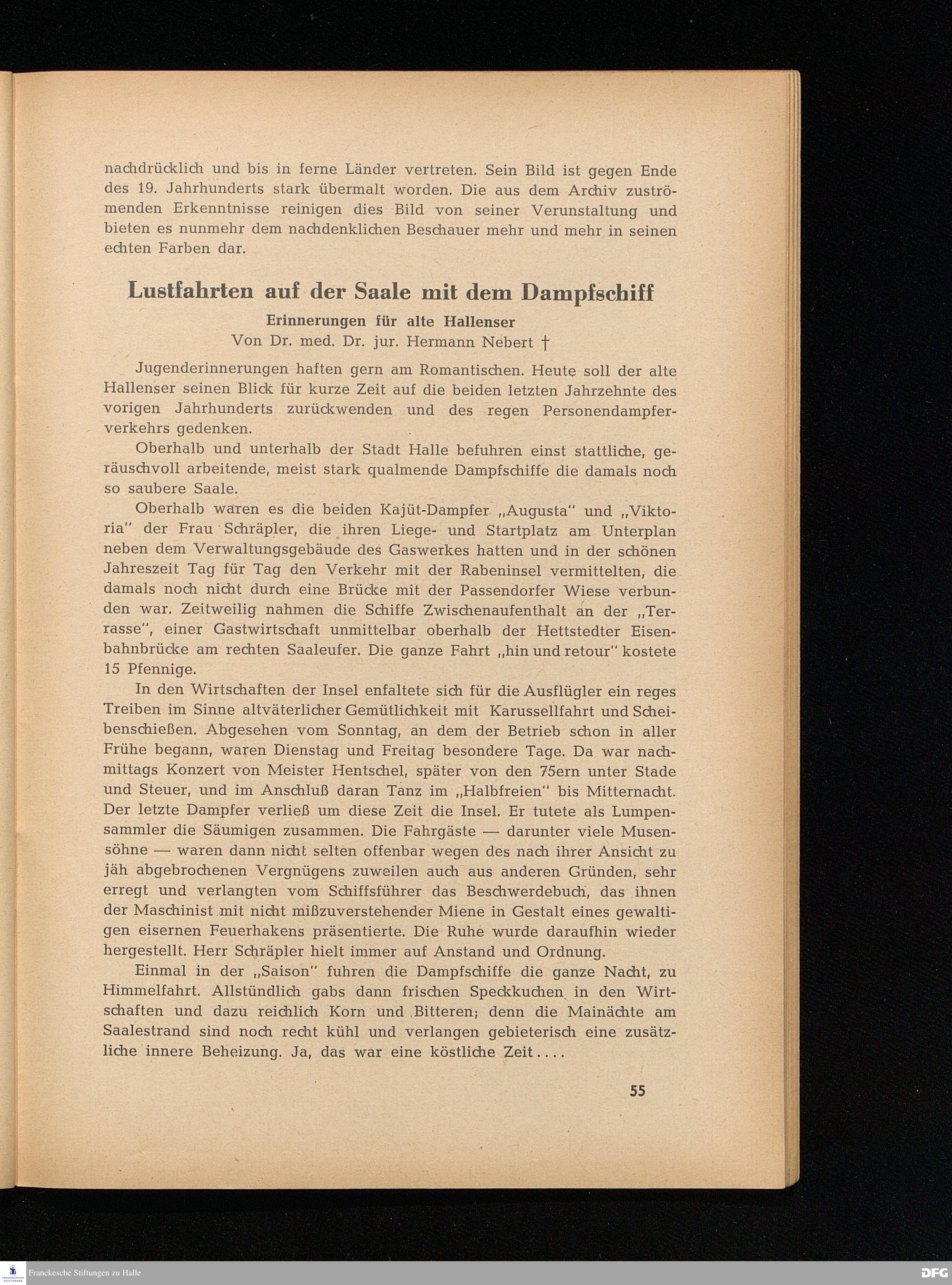 Lustfahrten auf der Saale mit dem Dampfschiff