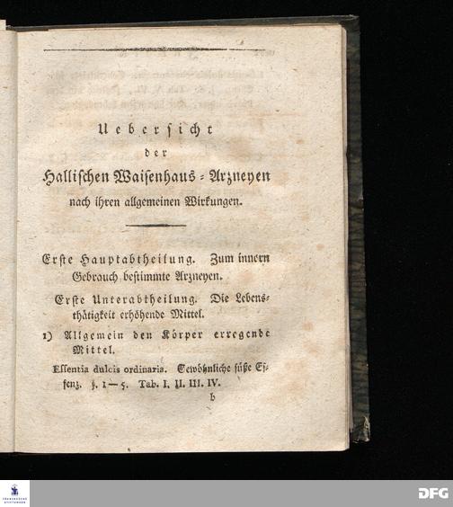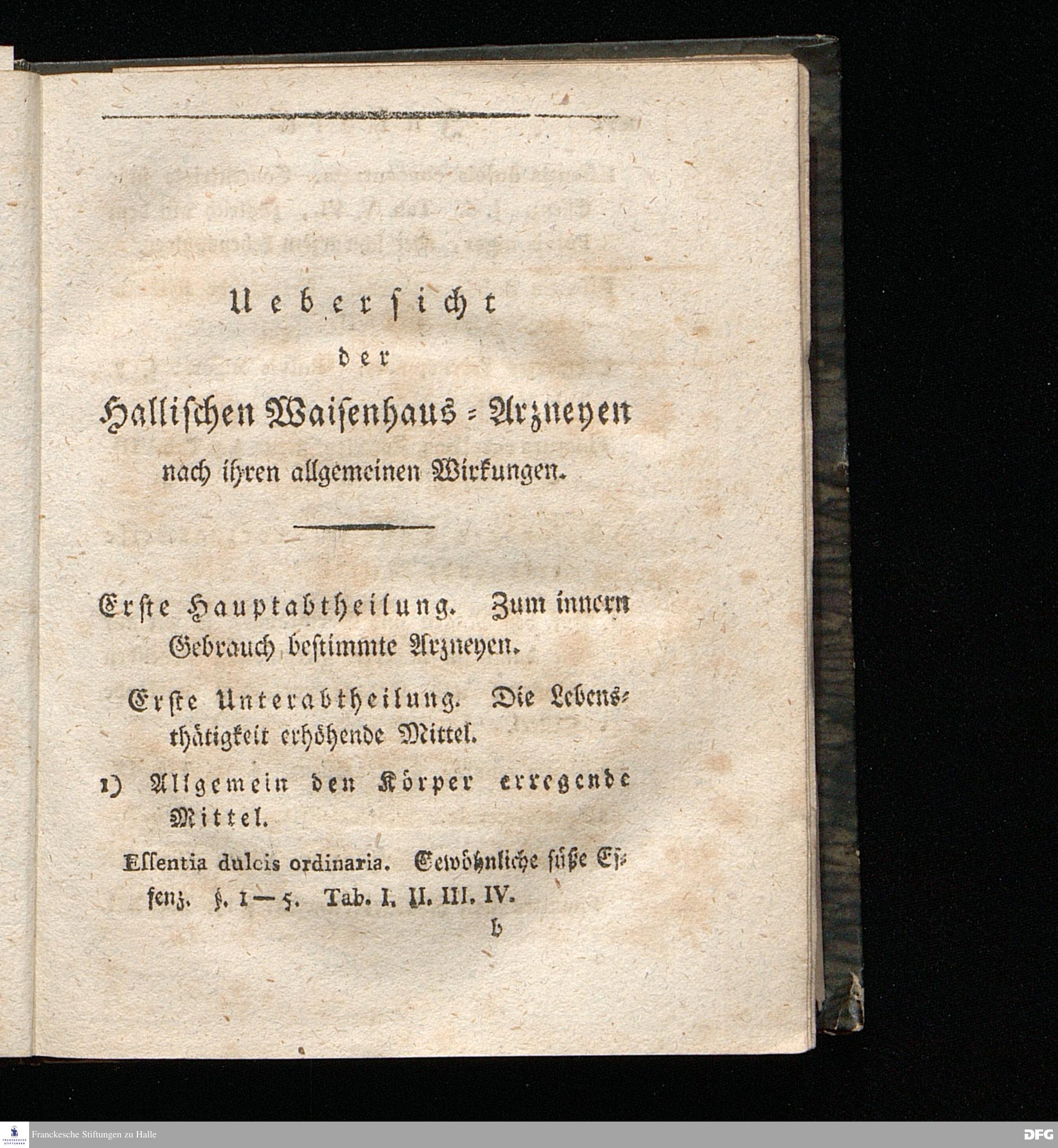 Uebersicht der Hallischen Waisenhaus-Arzneyen nach ihren allgemeinen Wirkungen.