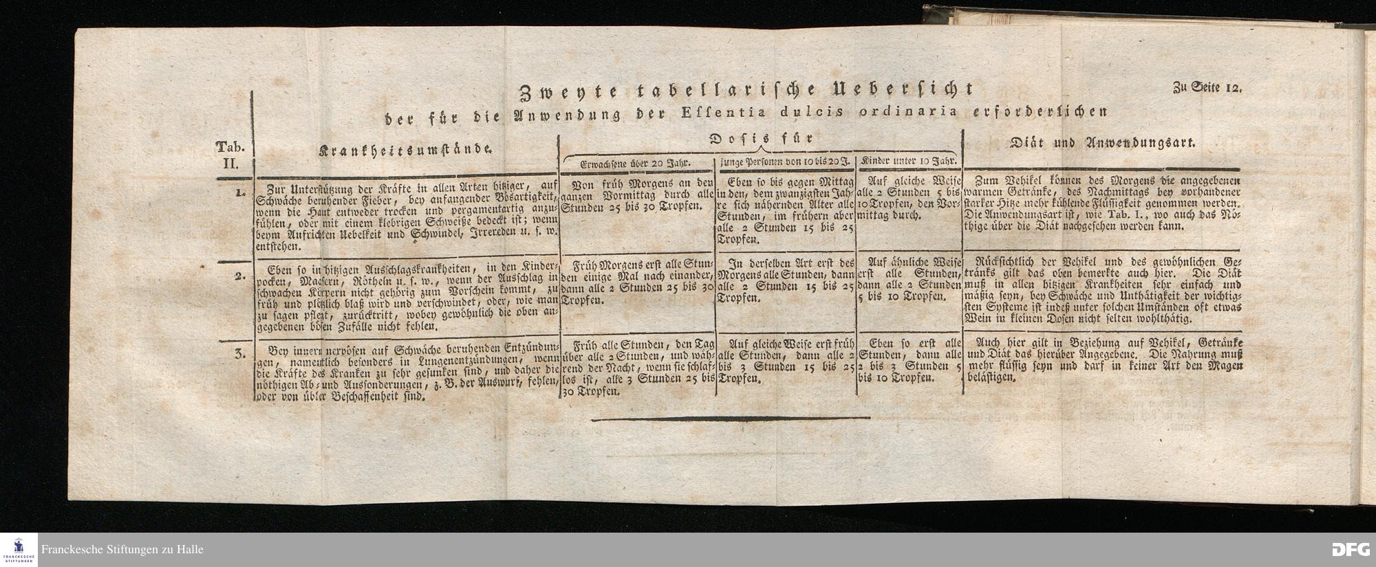 Zweyte tabellarische Uebersicht