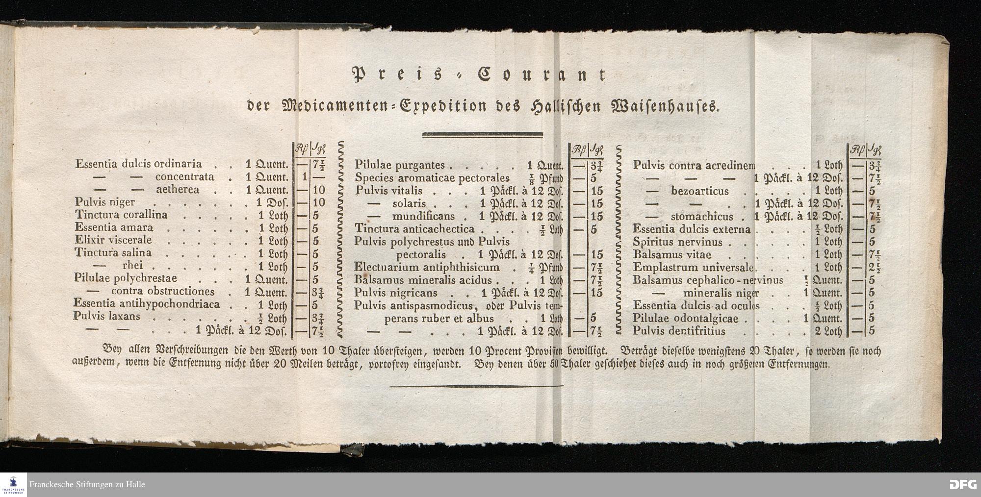 Preis-Courant der Medicamenten-Expedition des Hallischen Waisenhauses.