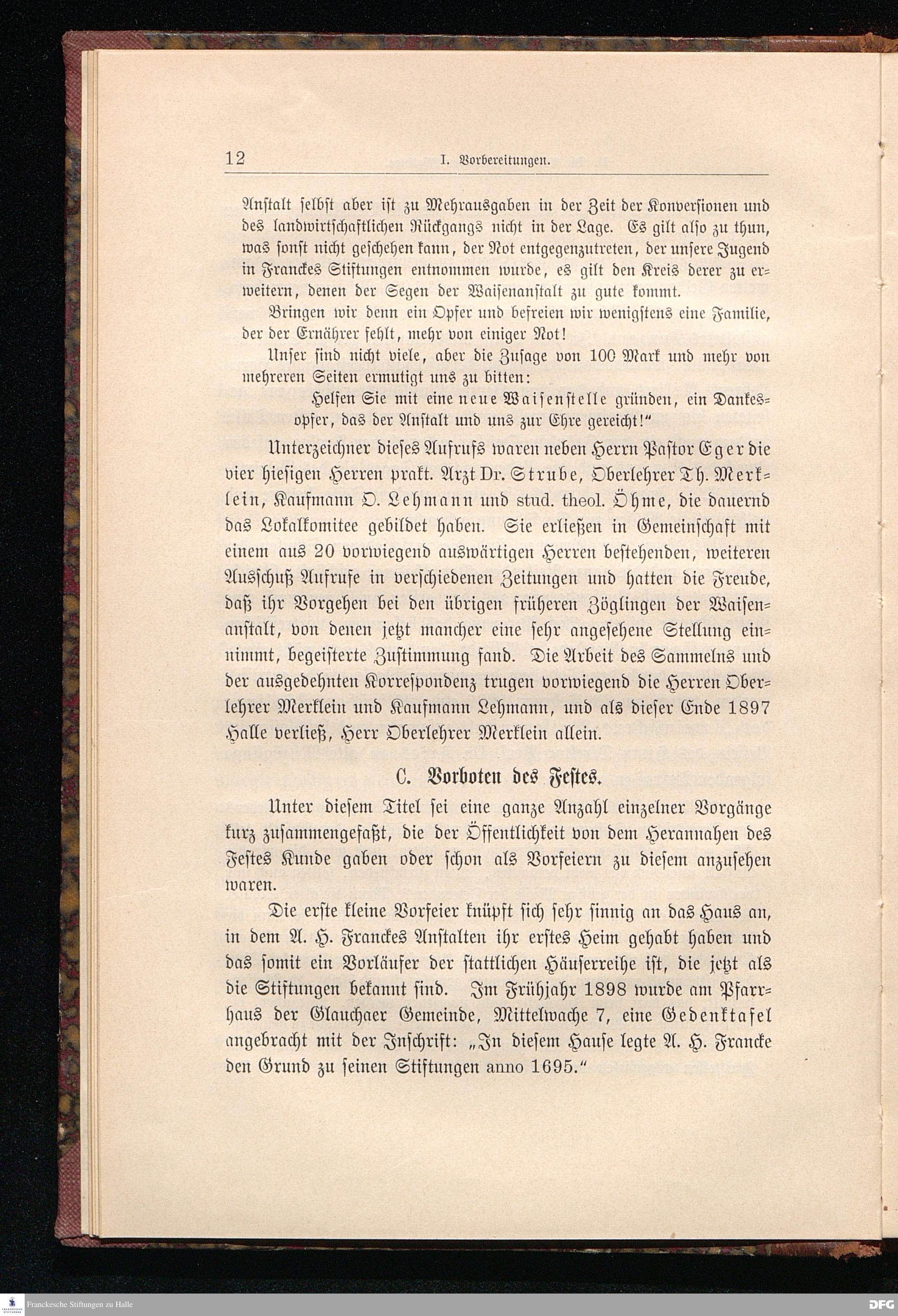 Bericht über die zweihundertjährige Jubelfeier der Franckeschen Stiftungen am 29., 30. Juni und 1. Juli 1898.