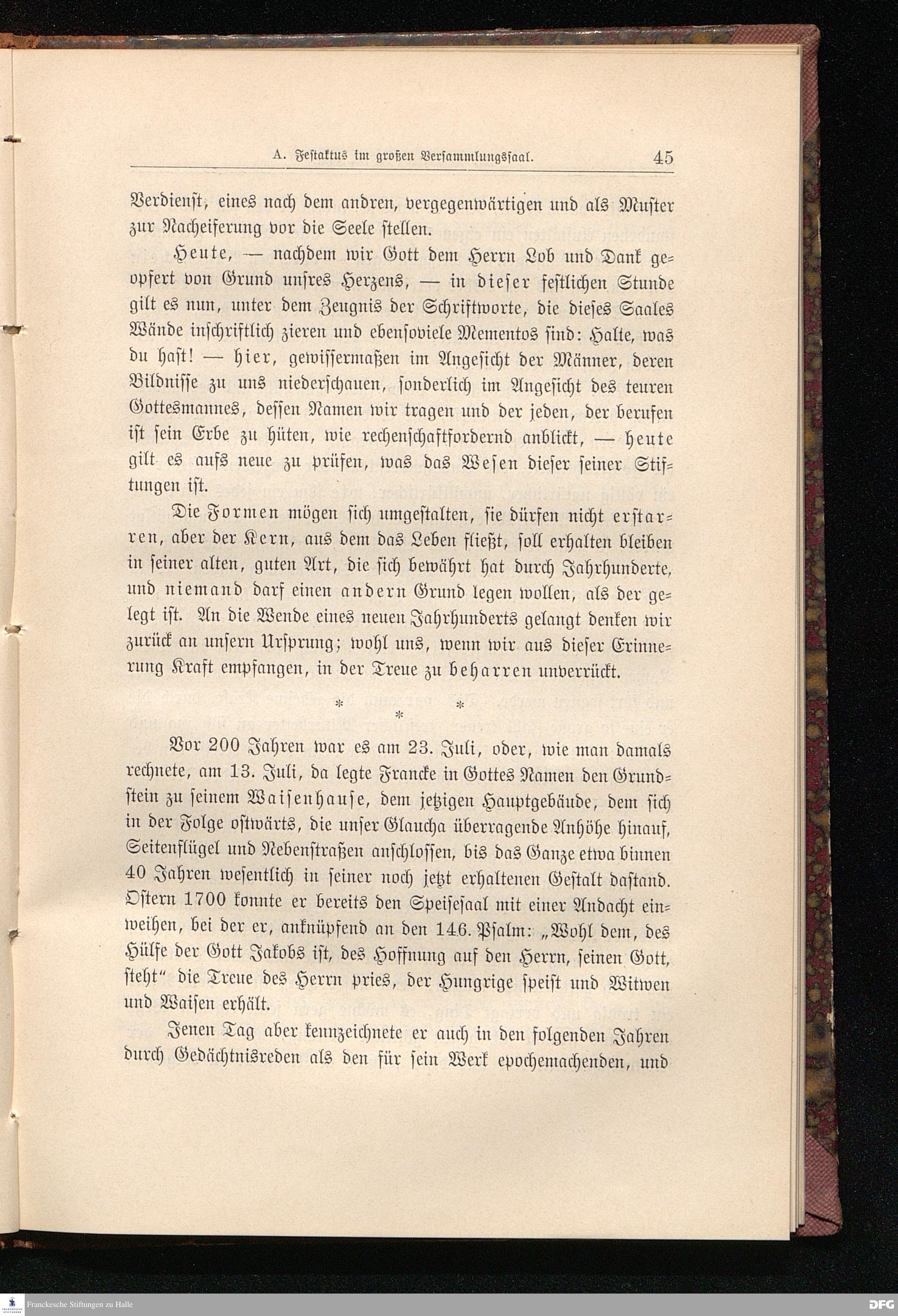 Bericht über die zweihundertjährige Jubelfeier der Franckeschen Stiftungen am 29., 30. Juni und 1. Juli 1898.
