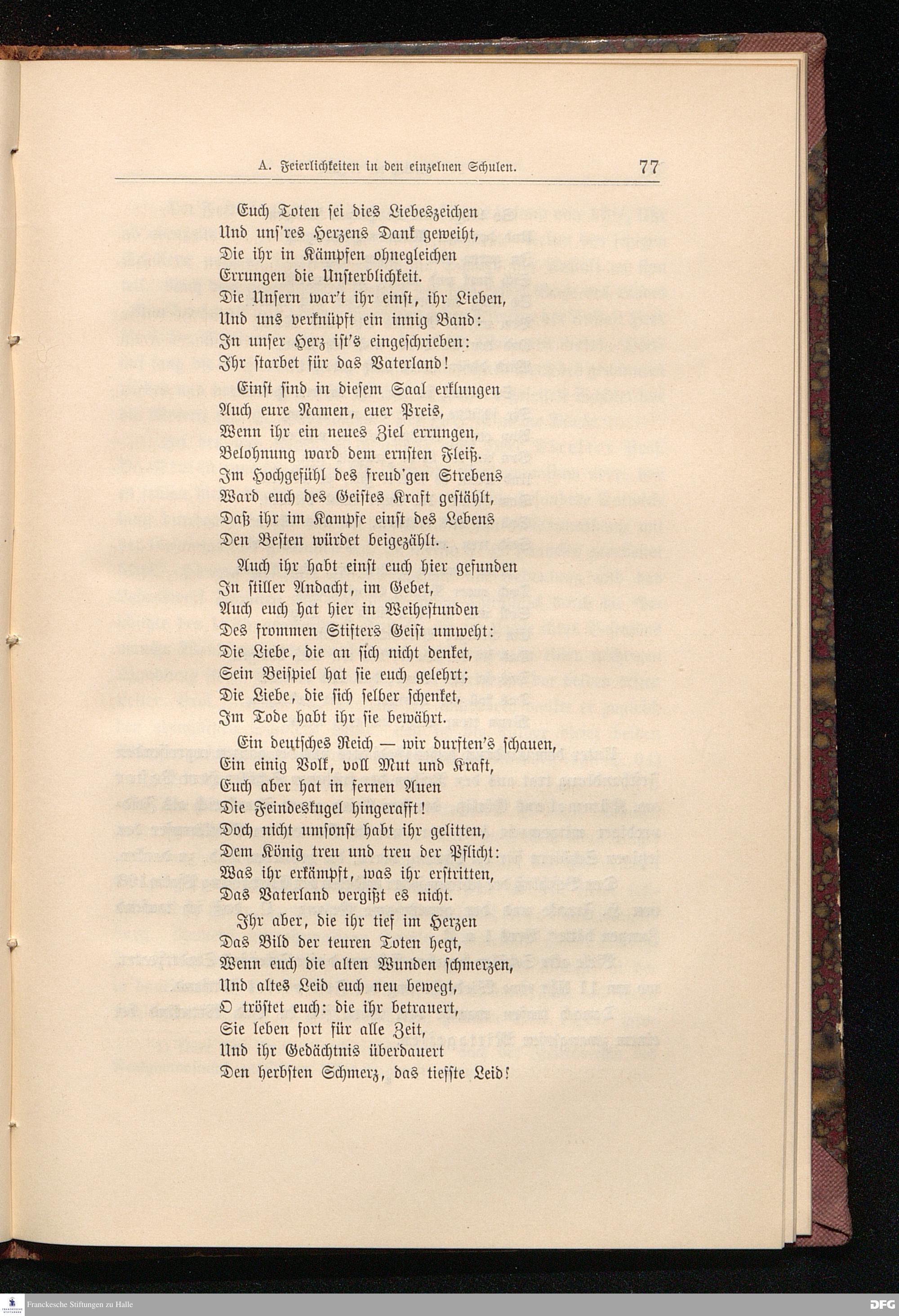 A. Feierlichkeiten in den einzelnen Schulen.