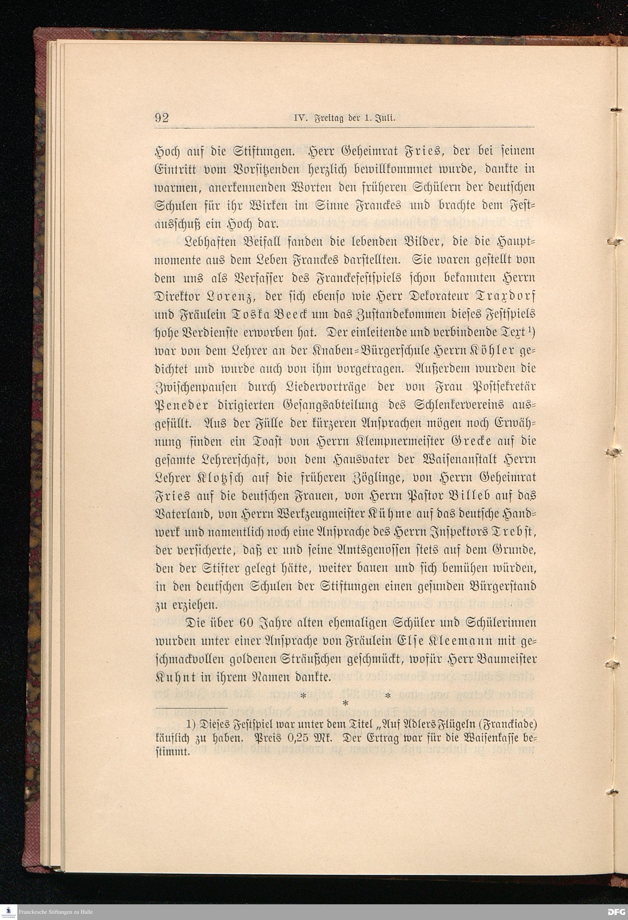 Bericht über die zweihundertjährige Jubelfeier der Franckeschen Stiftungen am 29., 30. Juni und 1. Juli 1898.