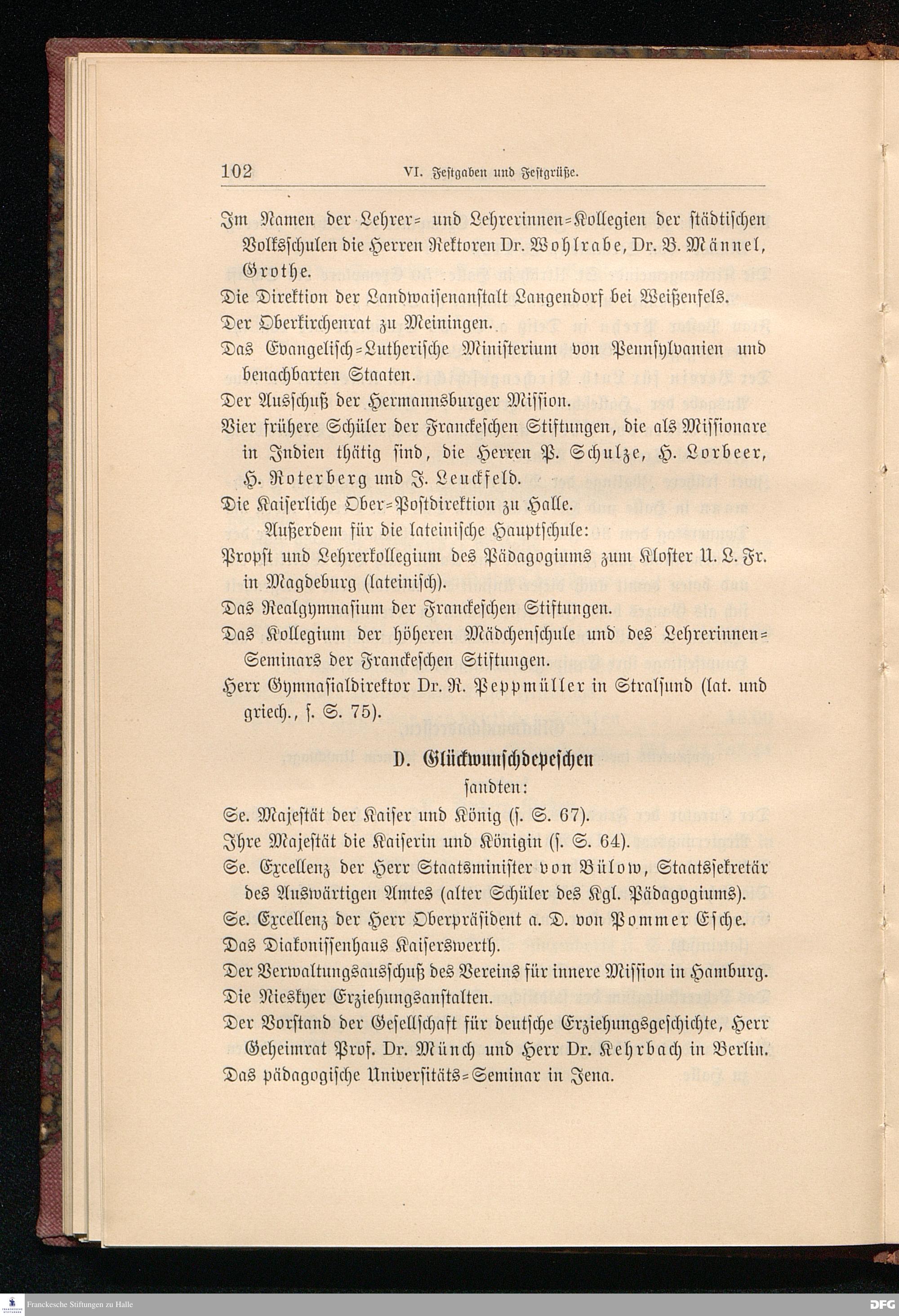 Bericht über die zweihundertjährige Jubelfeier der Franckeschen Stiftungen am 29., 30. Juni und 1. Juli 1898.