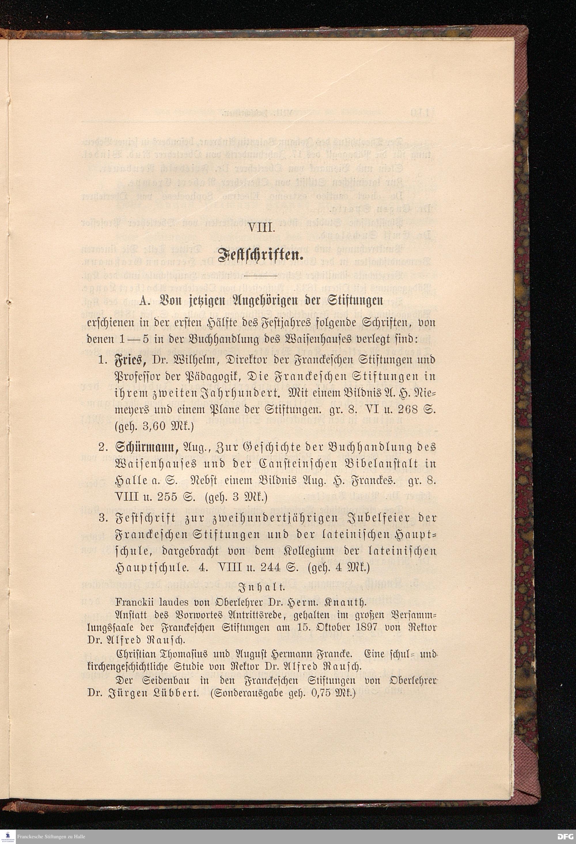 Bericht über die zweihundertjährige Jubelfeier der Franckeschen Stiftungen am 29., 30. Juni und 1. Juli 1898.