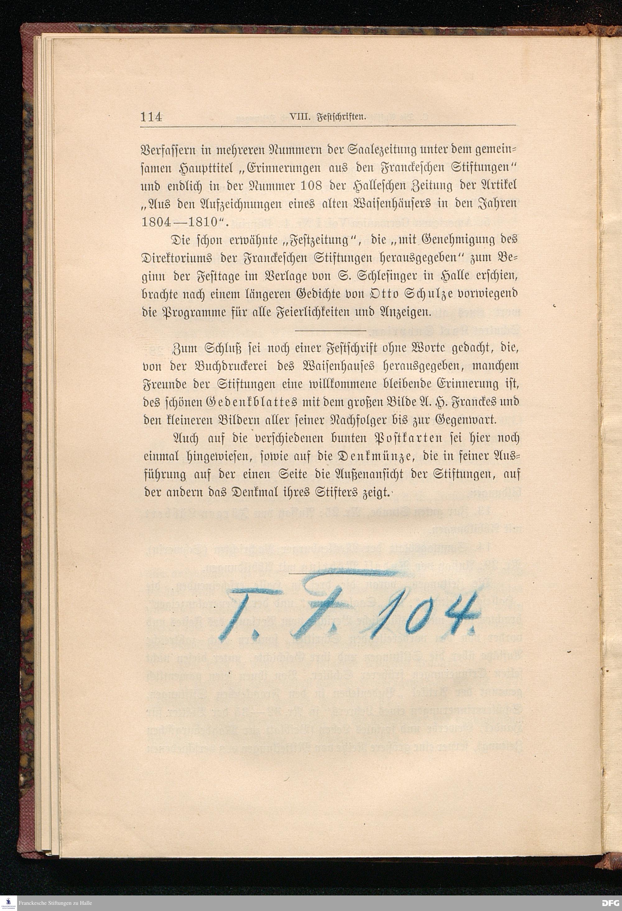 Bericht über die zweihundertjährige Jubelfeier der Franckeschen Stiftungen am 29., 30. Juni und 1. Juli 1898.