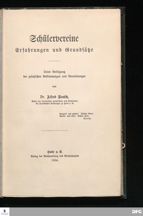 Schülervereine. Erfahrungen und Grundsätze. Unter Beifügung der gesetzlichen Bestimmungen...