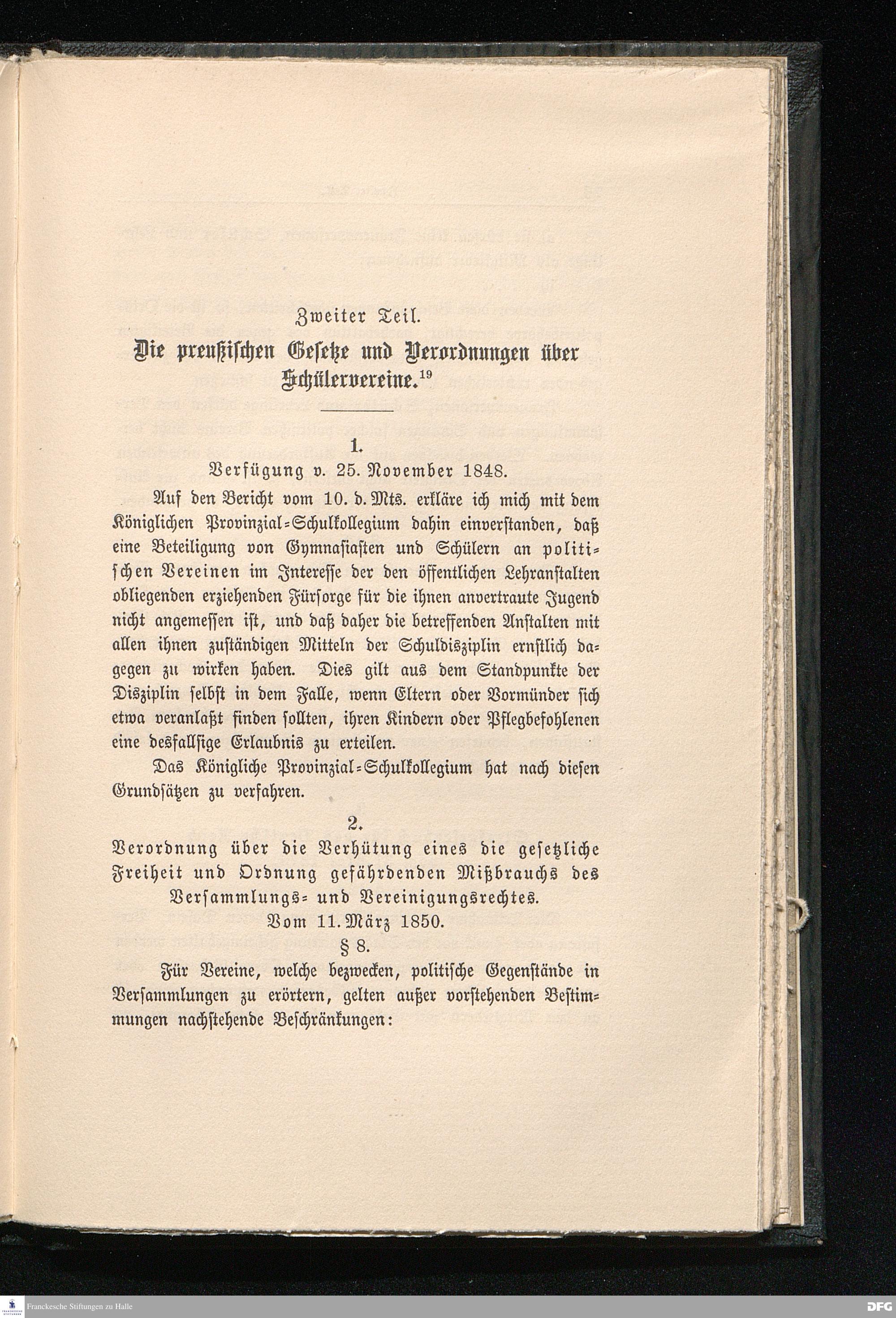 Zweiter Teil. Die preußischen Gesetze und Verordnungen über Schülervereine.