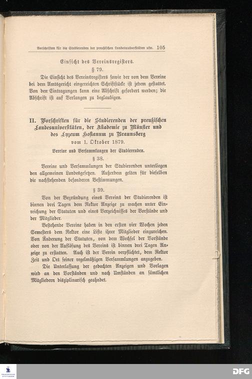 II. Vorschriften für die Studierenden der preußischen Landesuniversität, der Akademie zu Münster und des Lyzeum Hosianum zu Braunsberg.