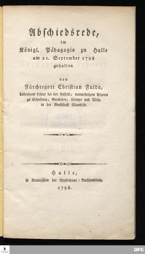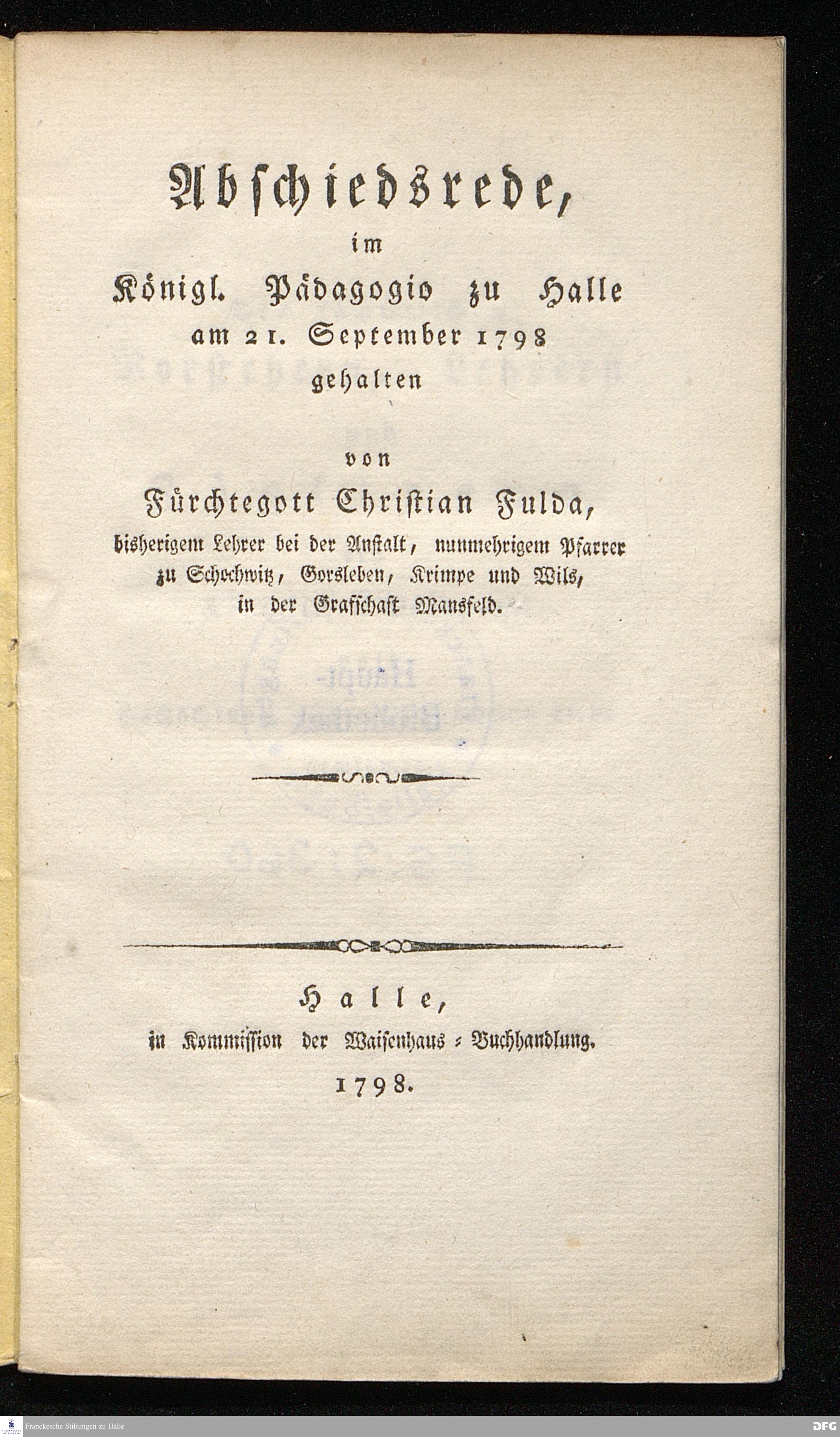 Abschiedsrede, im Königl. Pädagogio zu Halle am 21. September 1798.