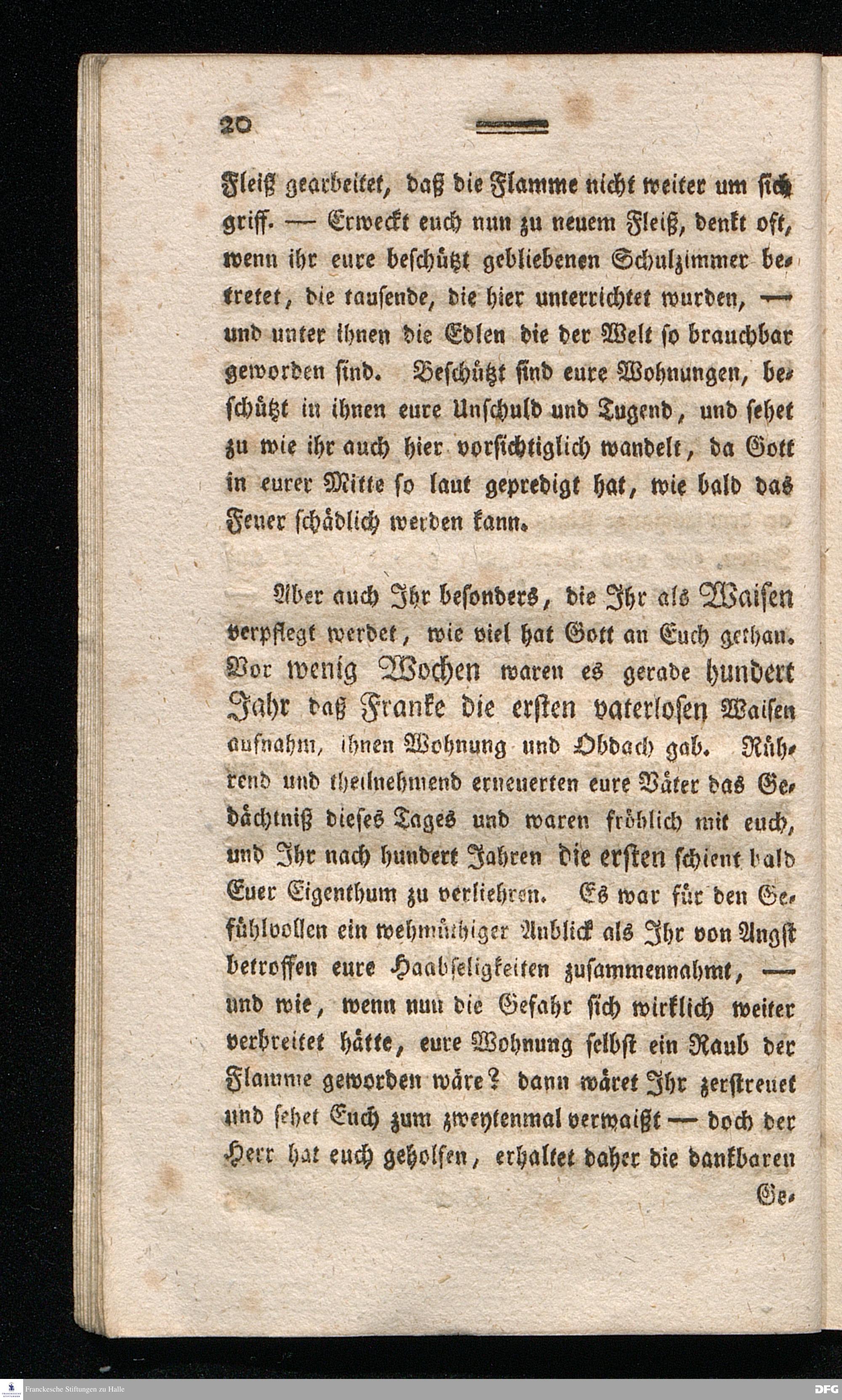 Die gnädige Hülfe Gottes bey einer drohenden Gefahr über Frankens fromme Stiftungen. Eine Predigt am vierten Sonntag des Advents 1795.