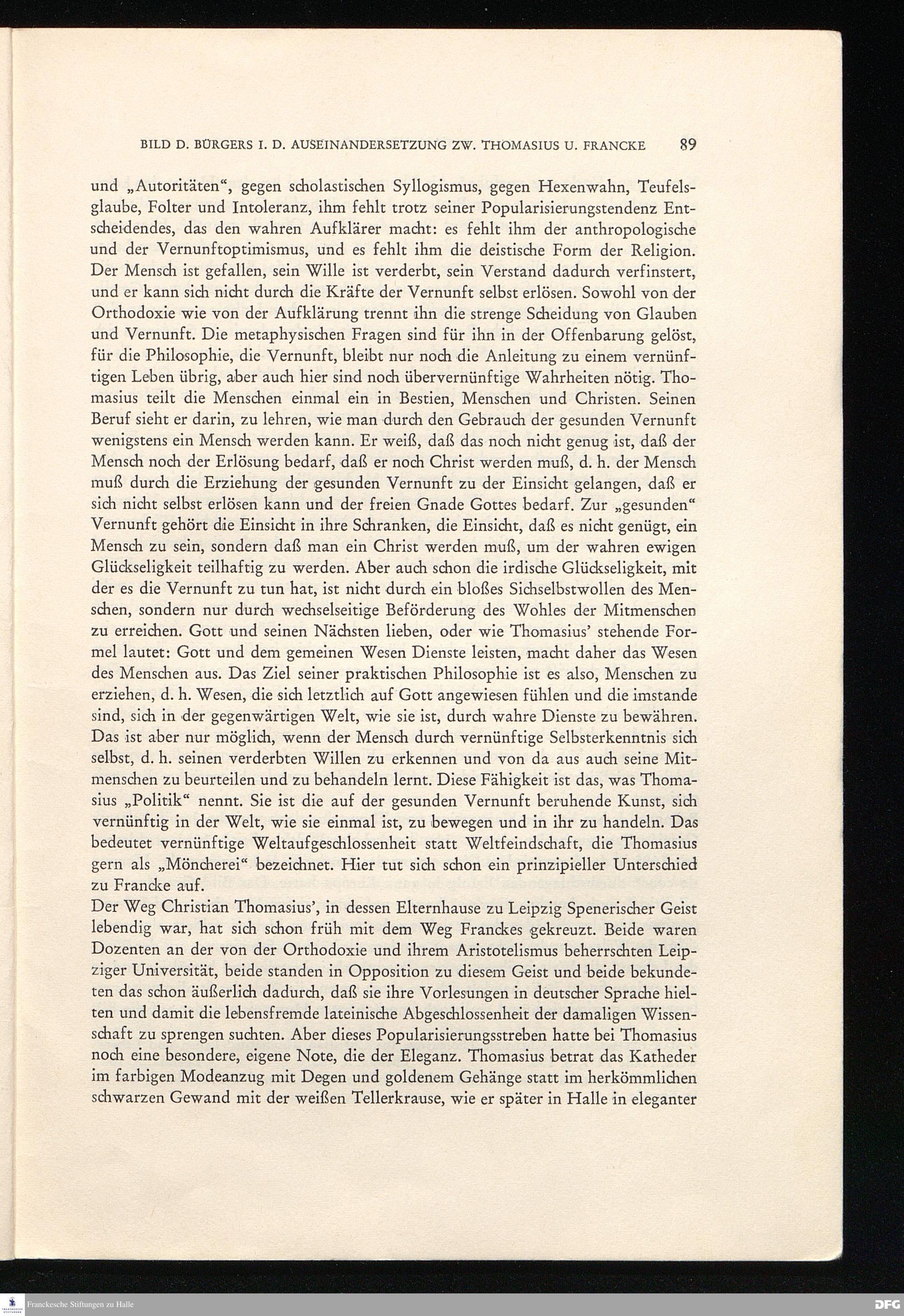 Das Bild des Bürgers in der Auseinandersetzung zwischen Christian Thomasius und August Hermann Francke.
