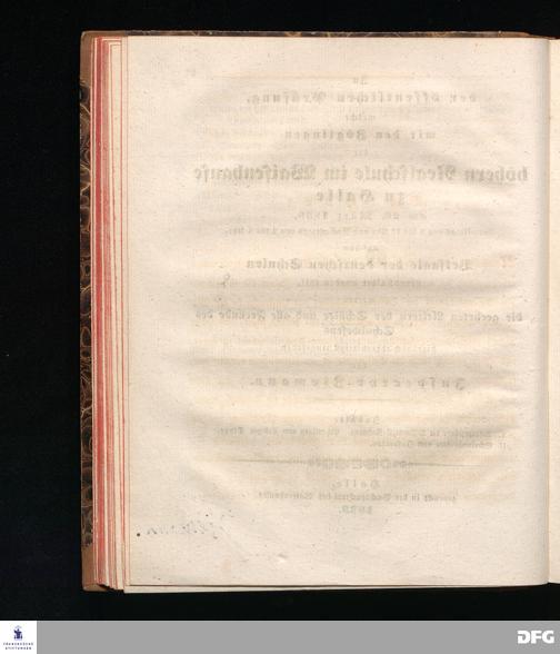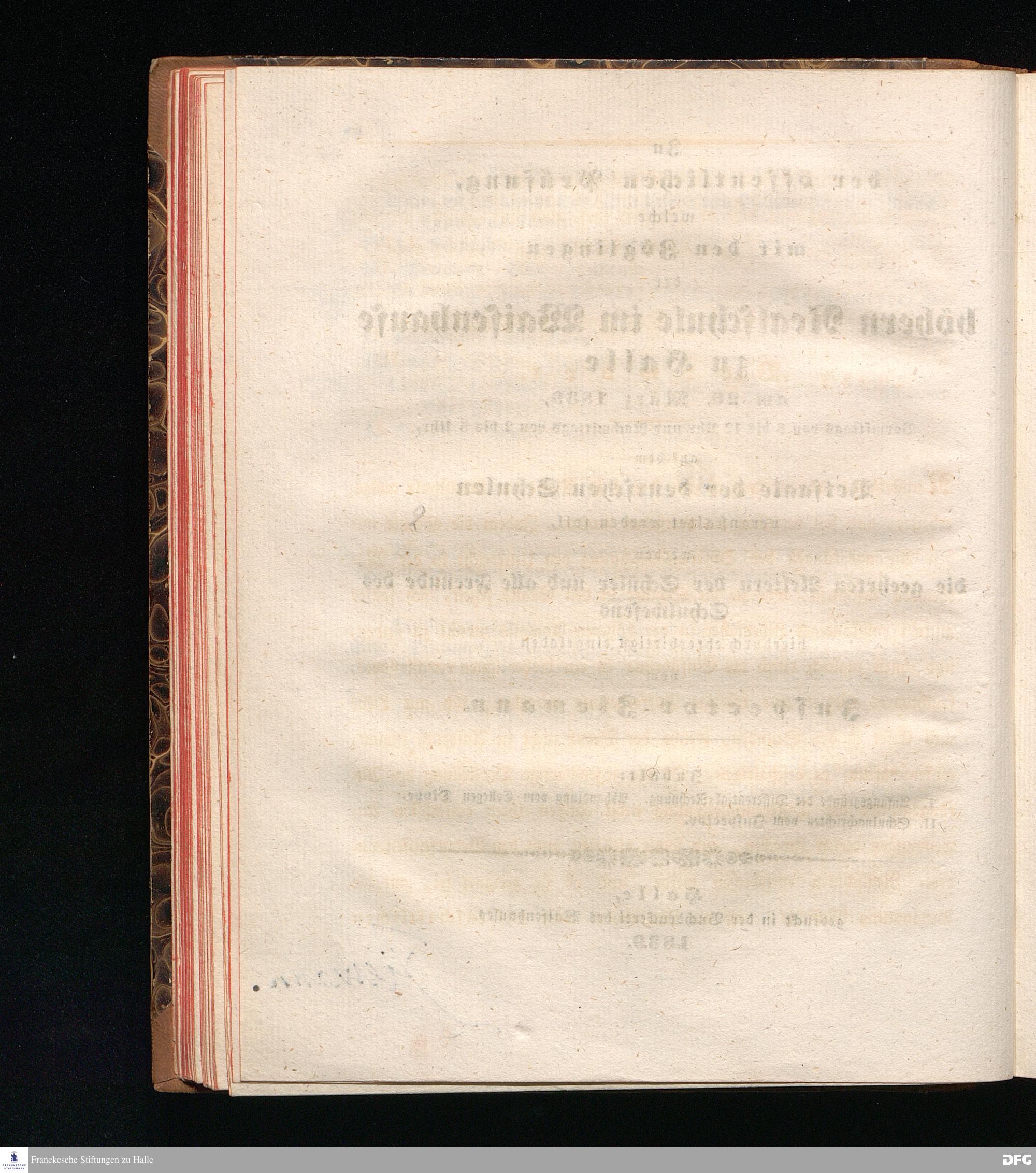 Zu der öffentlichen Prüfung, welche mit den Zöglingen der Realschule I. Ordnung im Waisenhause zu Halle am ... in dem Versammlungssaale des neuen Realschulgebäudes veranstaltet werden soll, werden ... eingeladen.