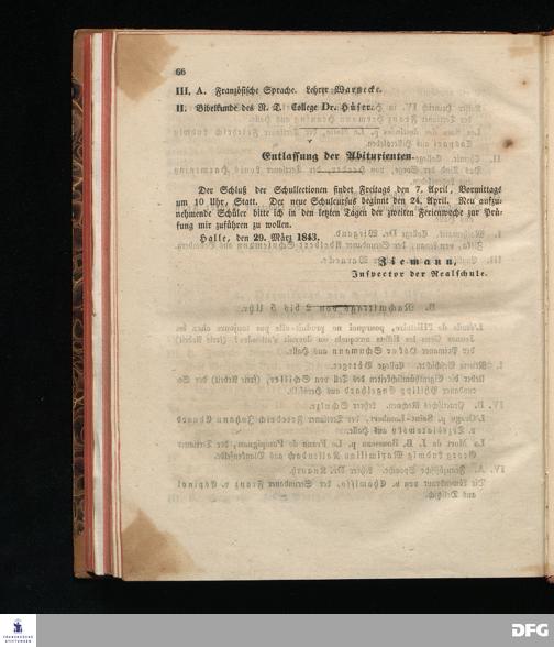 Zu der öffentlichen Prüfung, welche mit den Zöglingen der Realschule I. Ordnung im Waisenhause zu Halle am ... in dem Versammlungssaale des neuen Realschulgebäudes veranstaltet werden soll, werden ... eingeladen.
